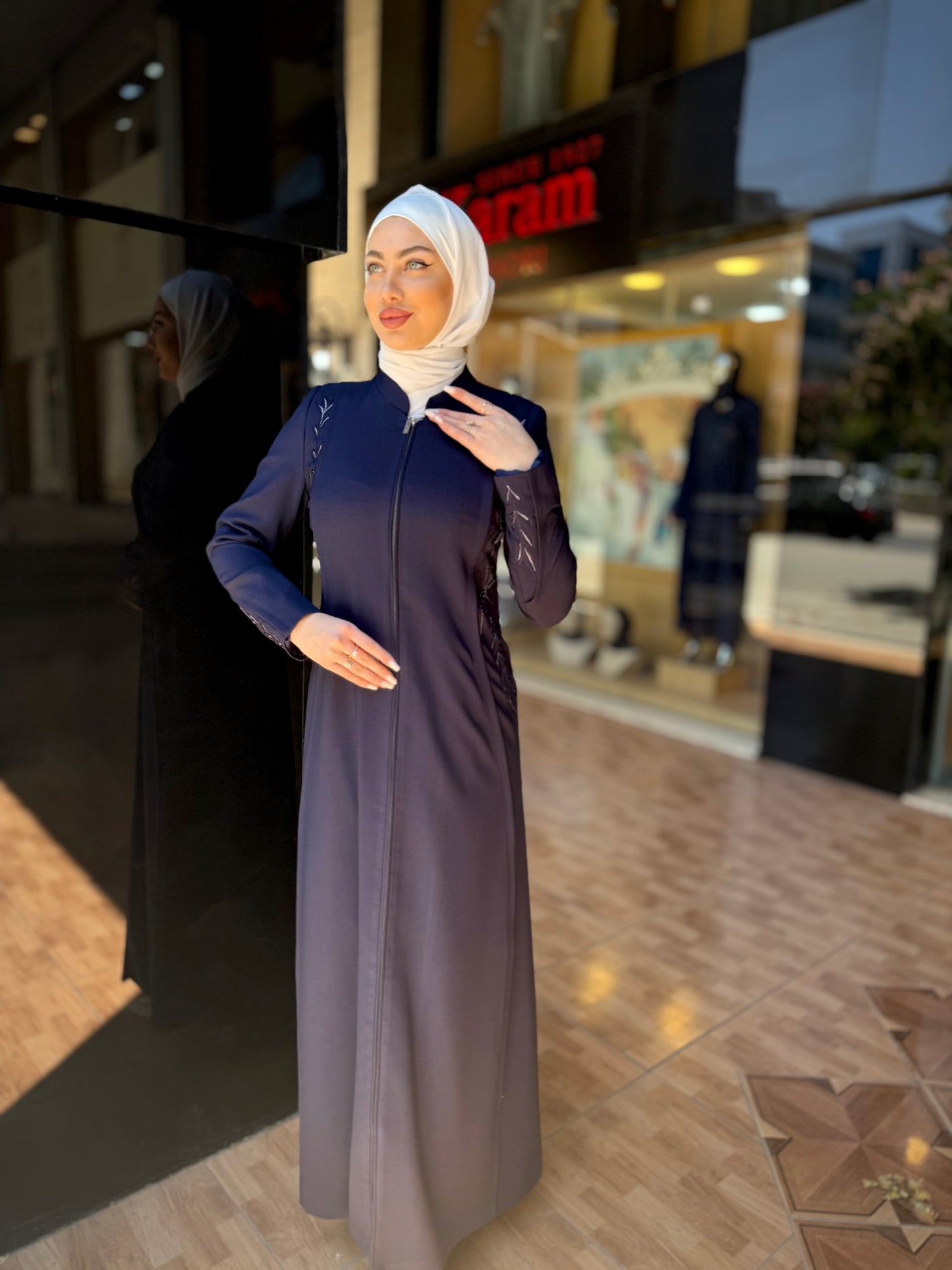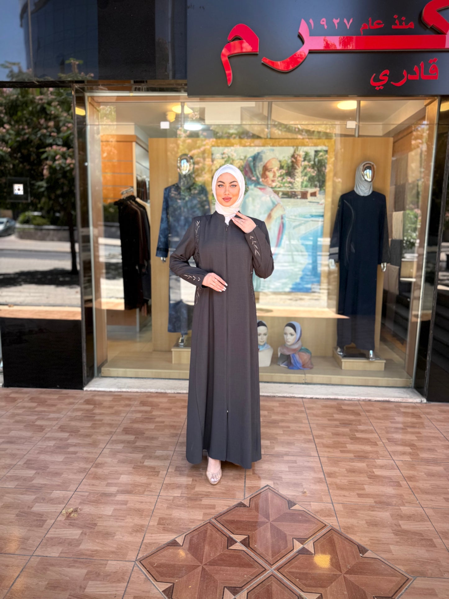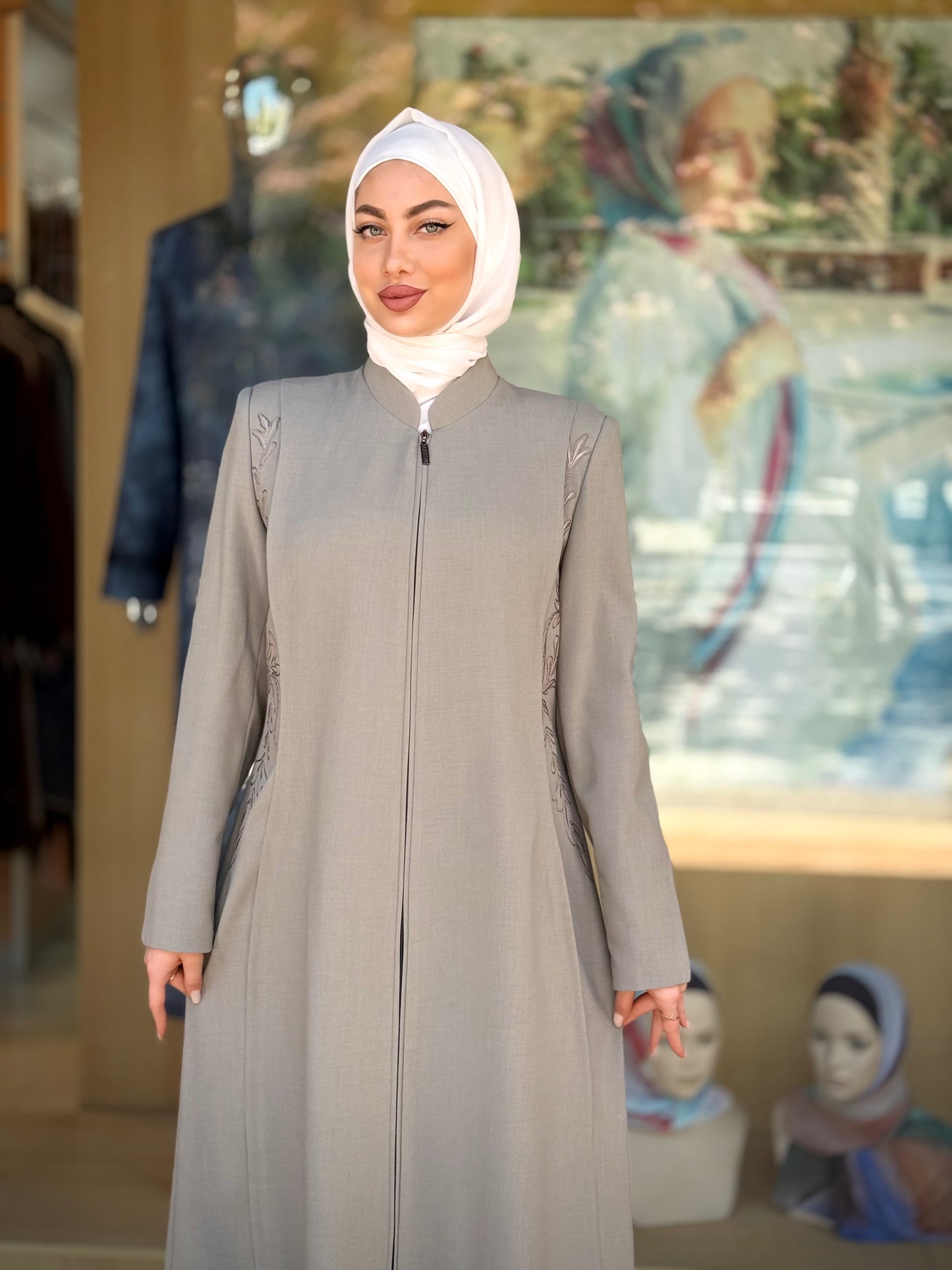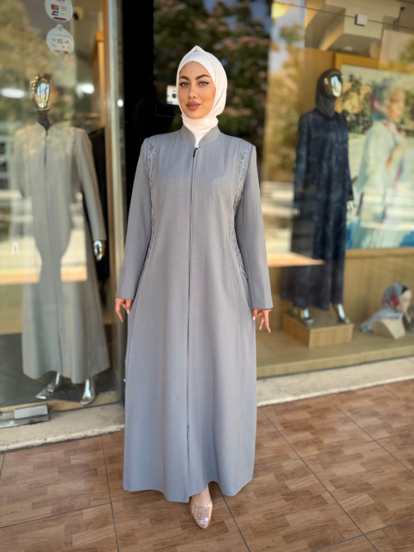الراقية من العباءات والملابس النسائية الحصرية وتميزي بهذا الجلباب بقصة انسيابية راقية وتفاصيل من التطريز على الصدر والأكمام لإضافة لمسة من الفخامة الهادئة. يغلق من الأمام بسحاب لتوفير راحة وعملية، وهو مثالي للمناسبات الرسمية .