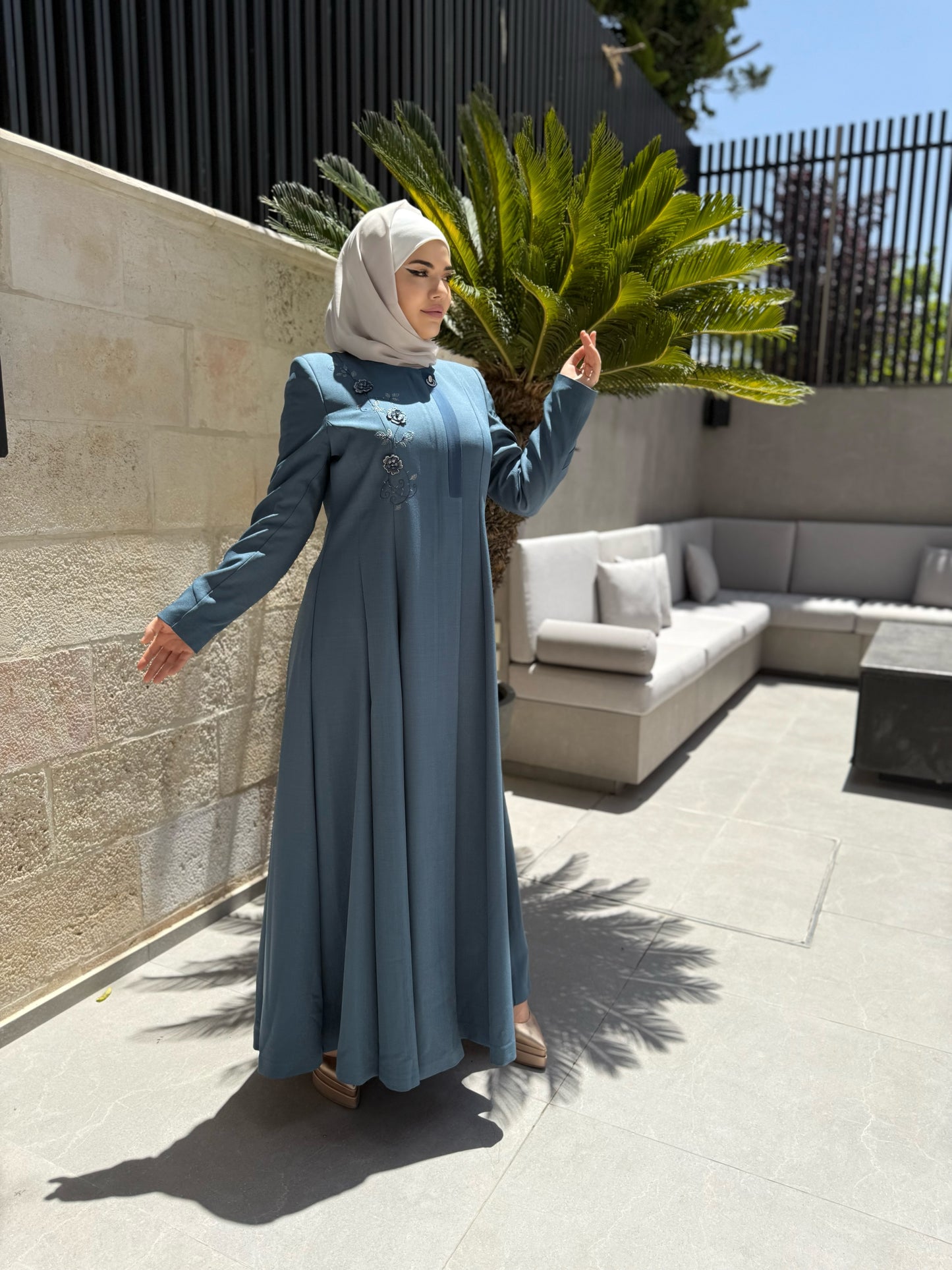 تألقي بأحدث صيحات الموضة مع مجموعة الكرم قادري من الملابس النسائية المصممة خصيصاً للمرأة الانيقة من الجلابيب والعبايات الفاخرة، وتميزي بهذا الجلباب العملي من قماش اللوكال ماركت ، المزين بتفاصيل عصرية من التطريز، مفتوح من الأمام يغلق بأزرار ، صمم وصنع في الأردن بأفضل أنواع أقمشة اللوكال ماركت