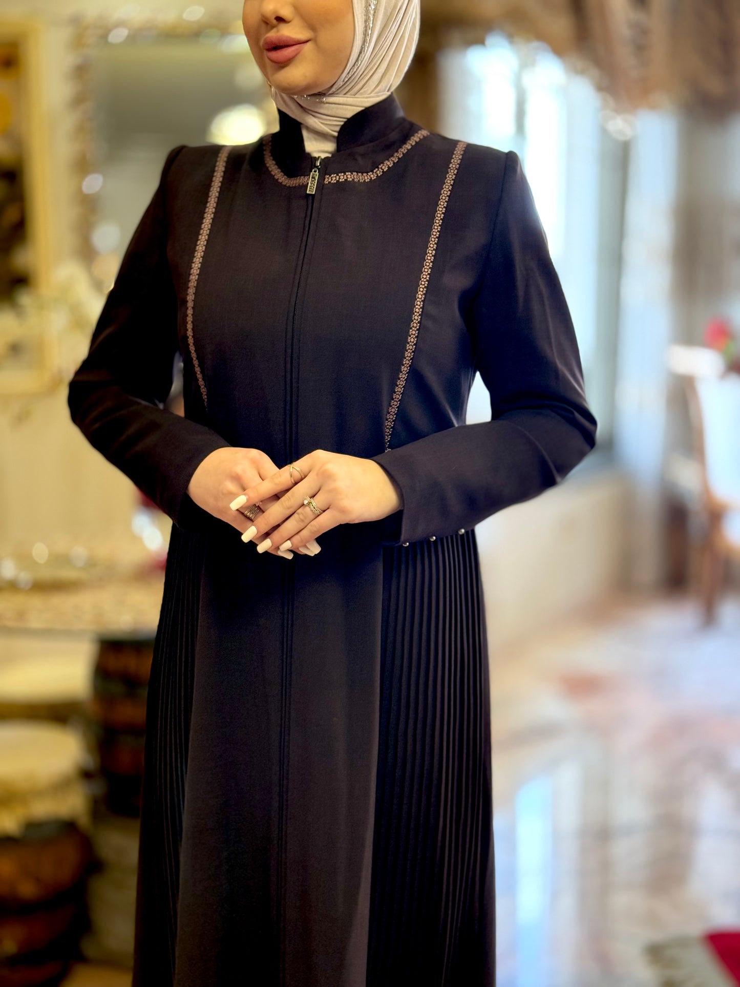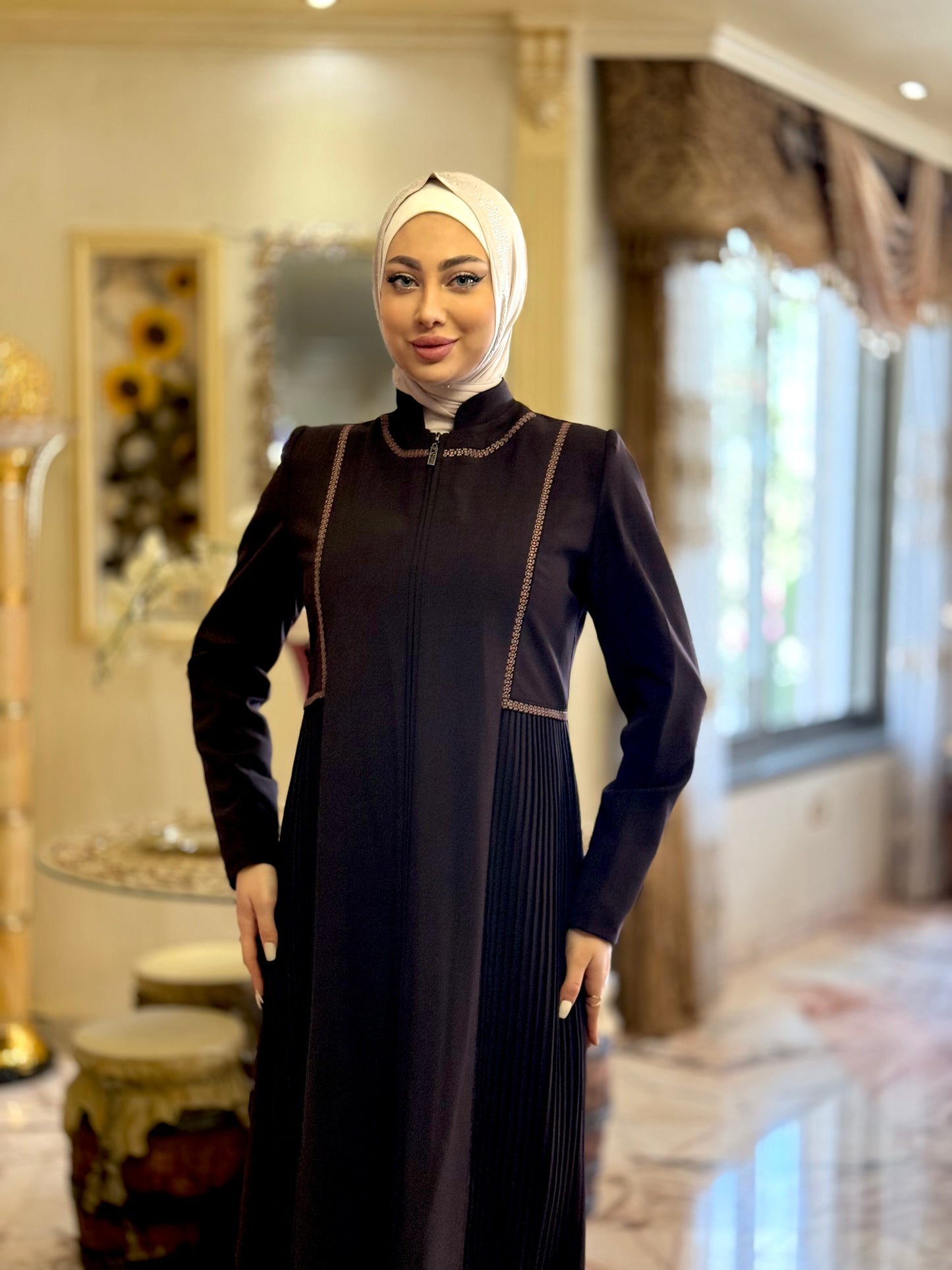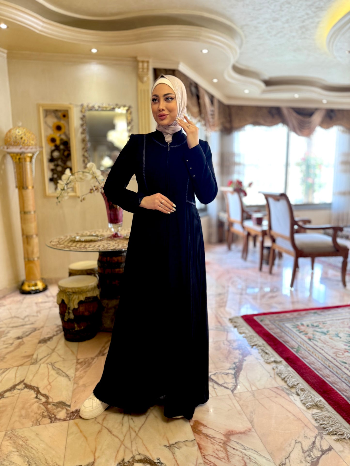 ارتقي بأناقتك مع مجموعة الكرم قادري الرائعة من العبايات والجلابيب العصرية الفخمة والأنيقة لتتألقي بهذا الجلباب الأنيق من قماش اللوكال ماركت، المزين بتفاصيل عصرية من التطريز، مفتوح من الأمام يغلق بسحاب، صمم وصنع في الأردن بأفضل أنواع قماش اللوكال ماركت