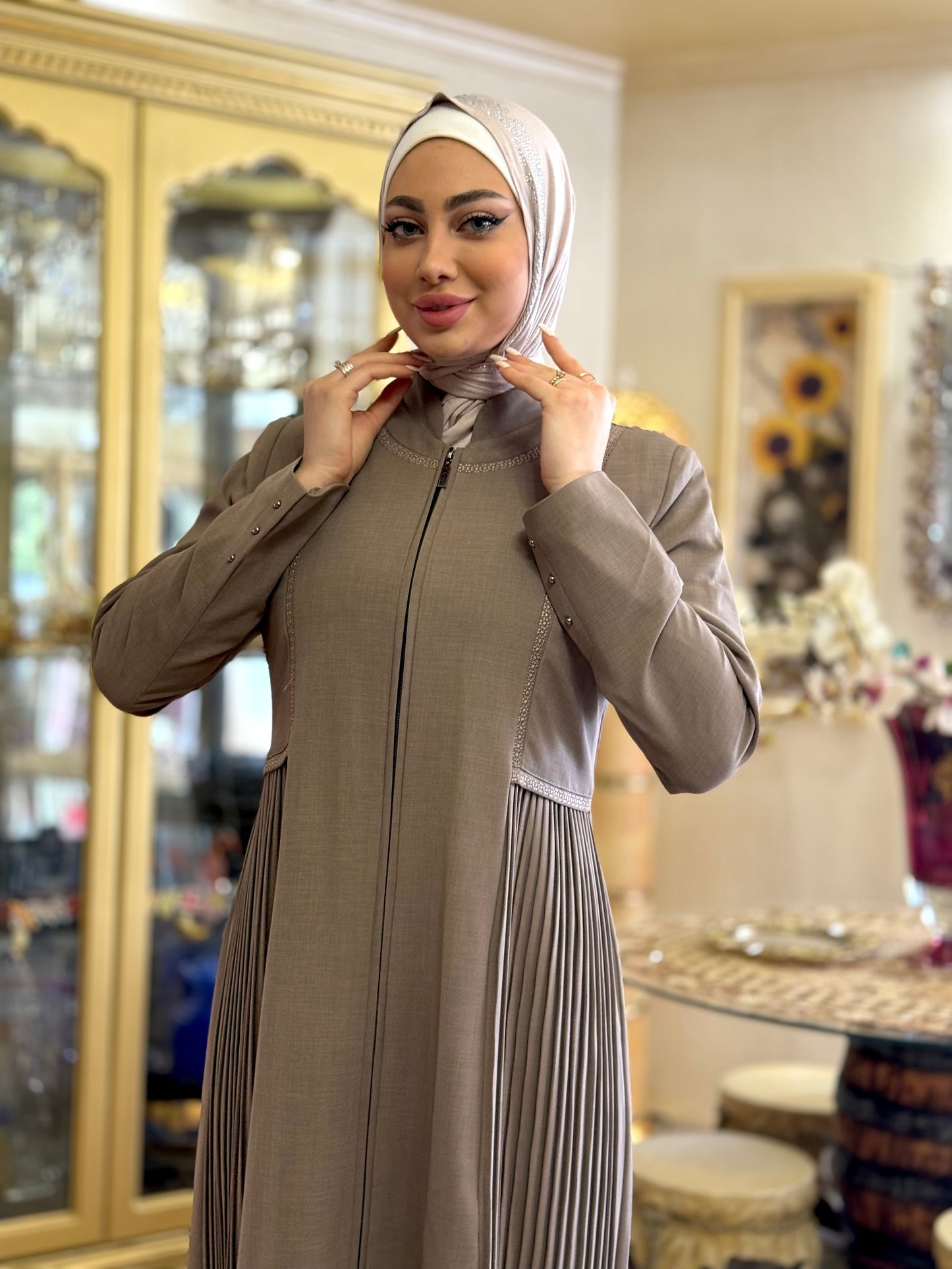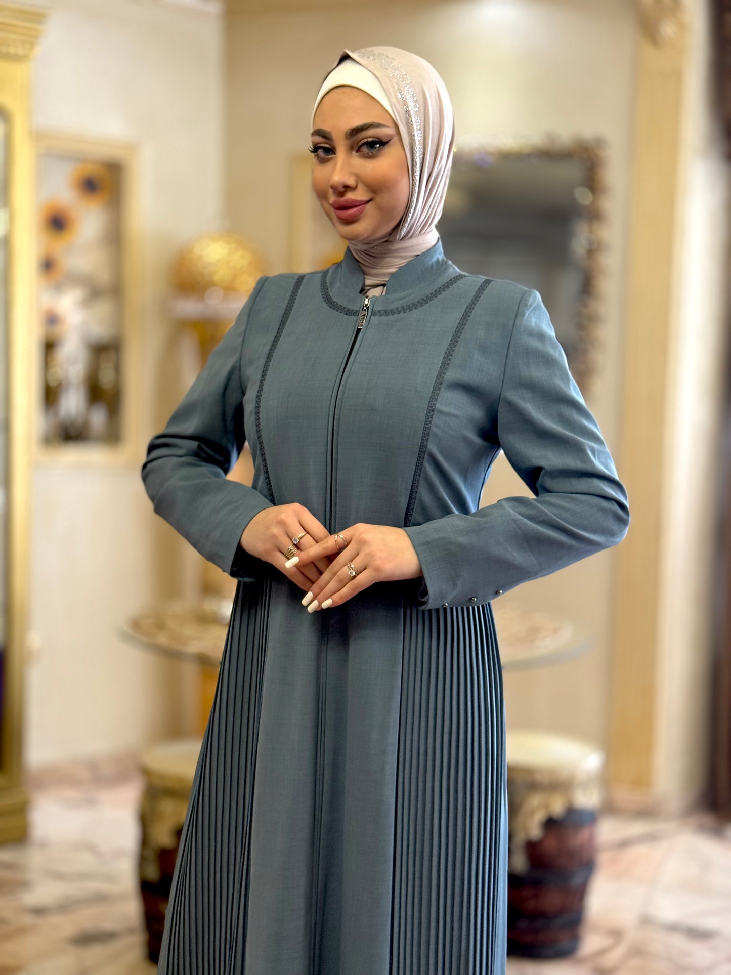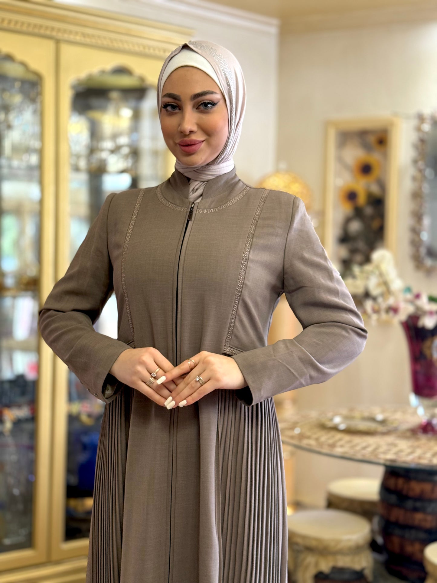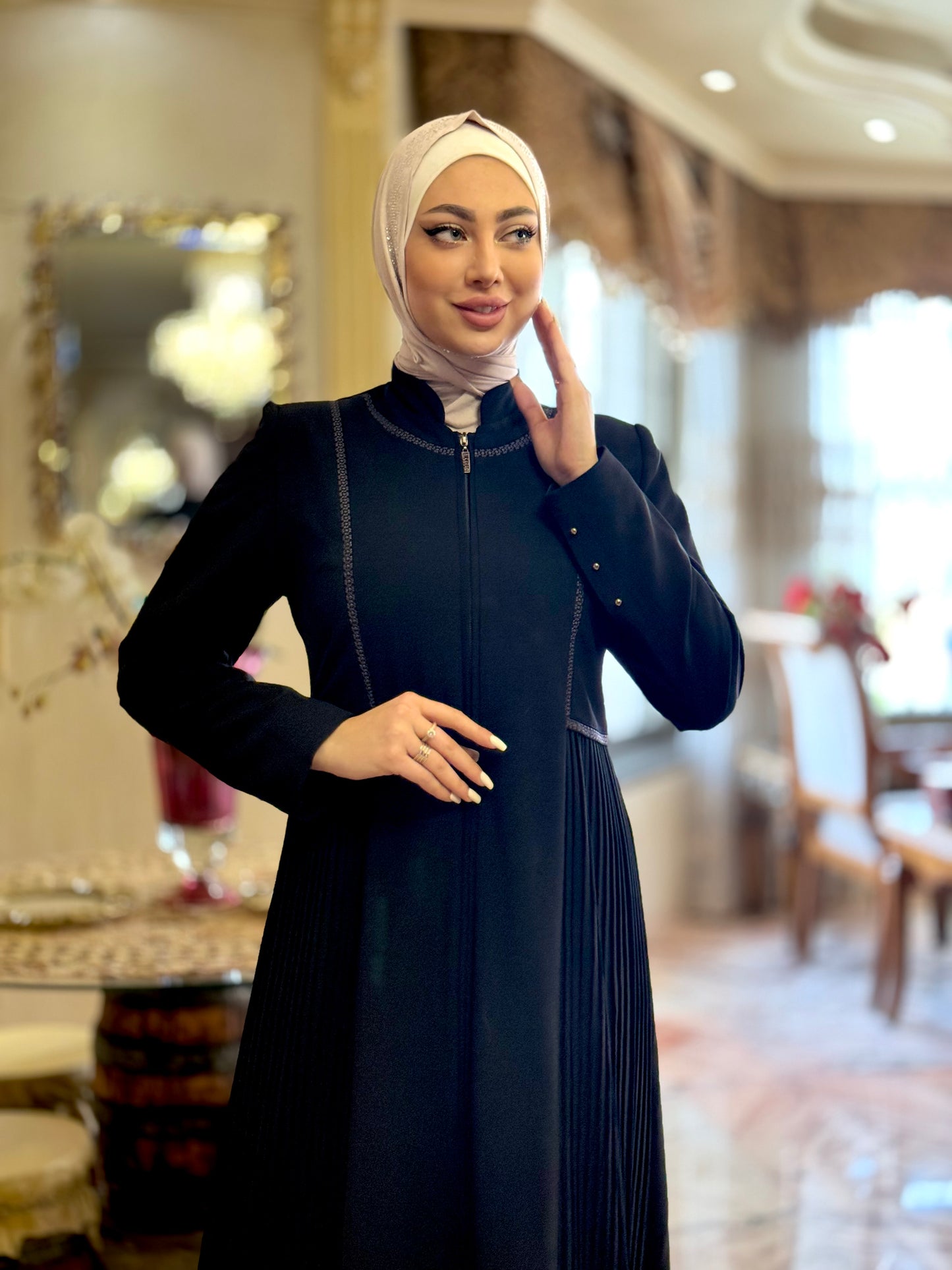 ارتقي بأناقتك مع مجموعة الكرم قادري الرائعة من العبايات والجلابيب العصرية الفخمة والأنيقة لتتألقي بهذا الجلباب الأنيق من قماش اللوكال ماركت، المزين بتفاصيل عصرية من التطريز، مفتوح من الأمام يغلق بسحاب، صمم وصنع في الأردن بأفضل أنواع قماش اللوكال ماركت