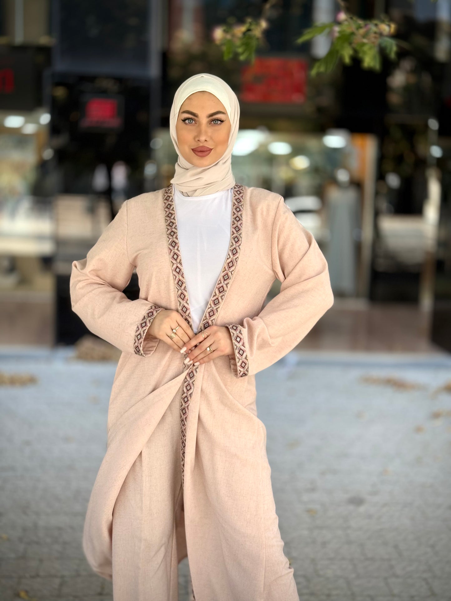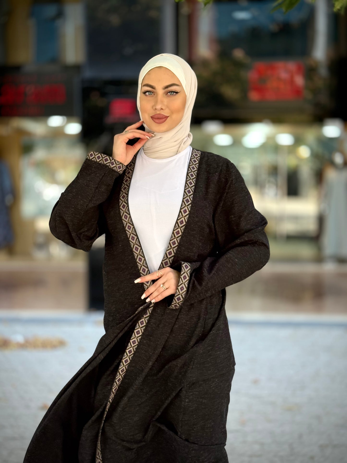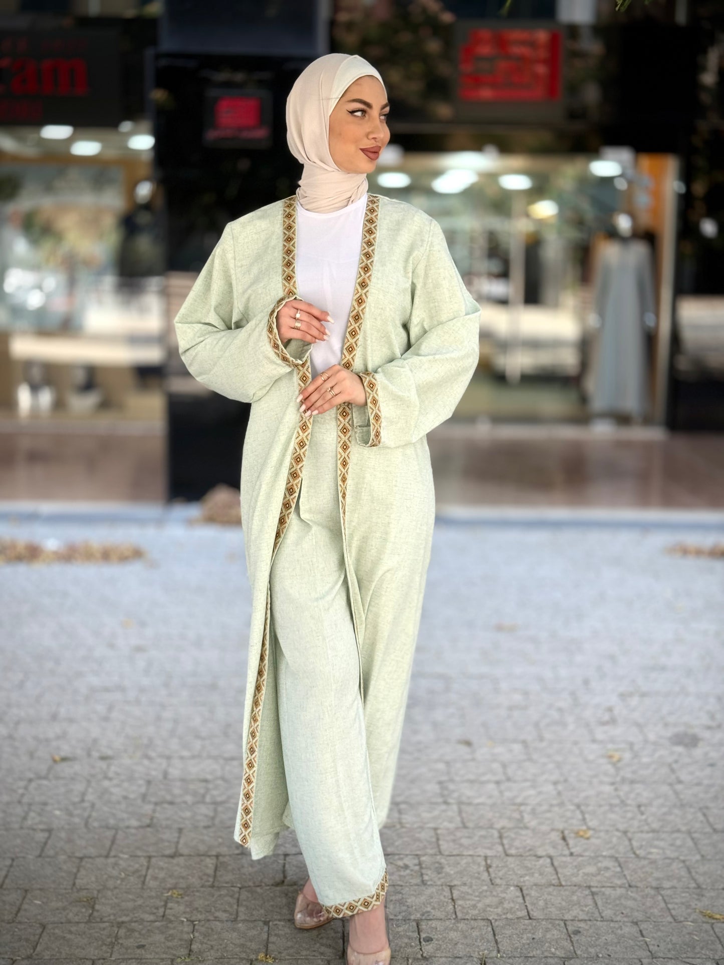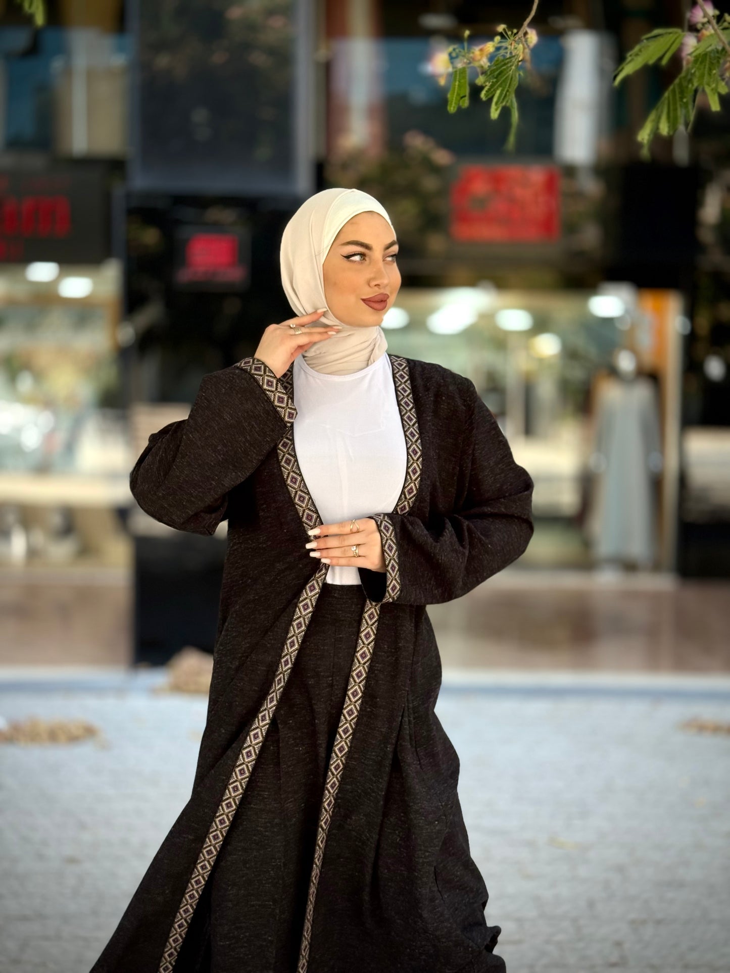 استمتعي بالراحة والأناقة مع مجموعة الكرم قادري للملابس النسائية والعبايات الواسعة والجلابيب العصرية الفخمة والأنيقة لتتألقي بهذه العباءة مع بنطال بقصة انسيابية راقية وتفاصيل من التطريز العصري من الأمام ومن الخلف وعلى الأكمام لإضافة لمسة من الفخامة الهادئة، وهو مثالي للأعمال اليومية والمناسبات .