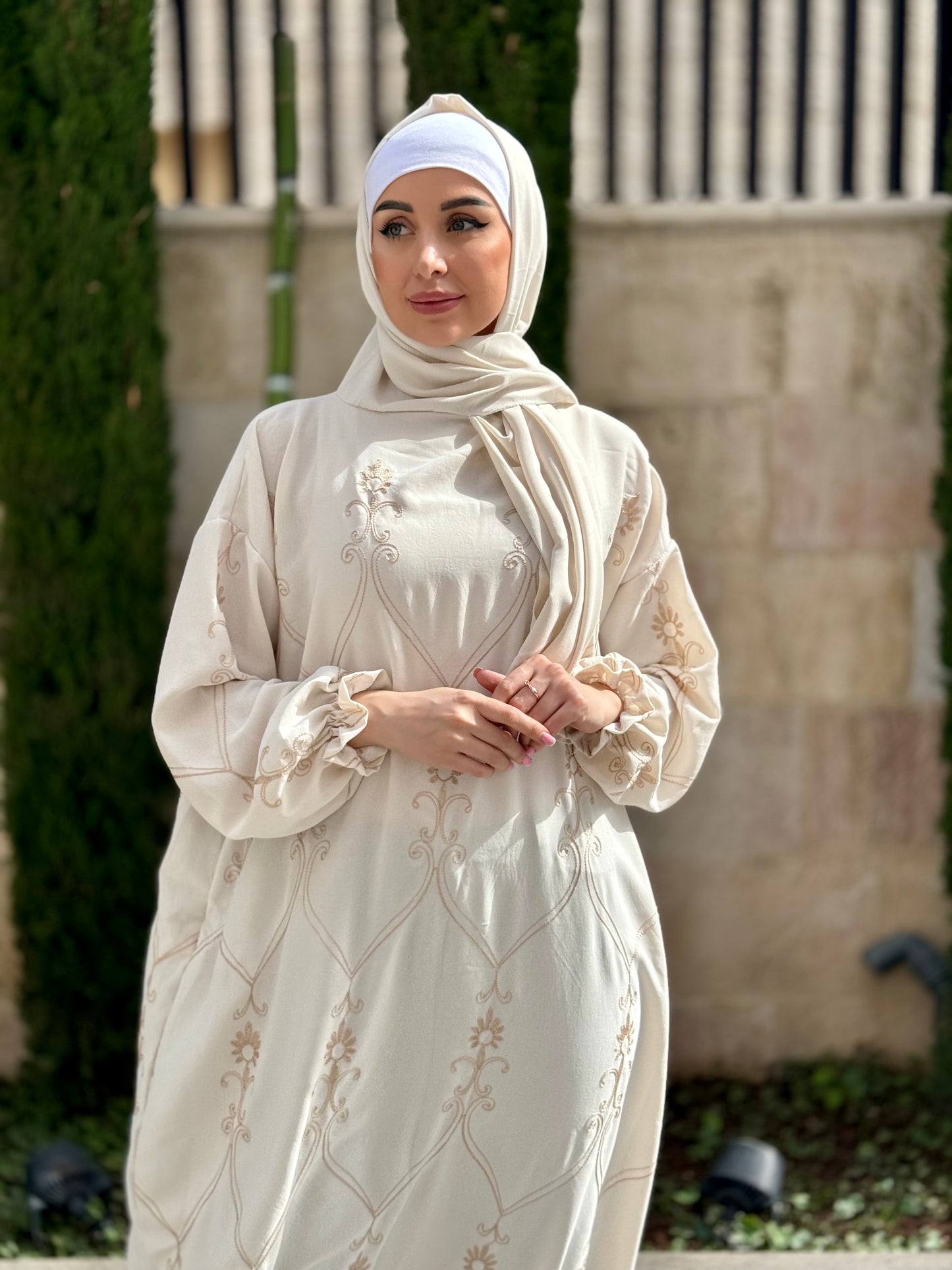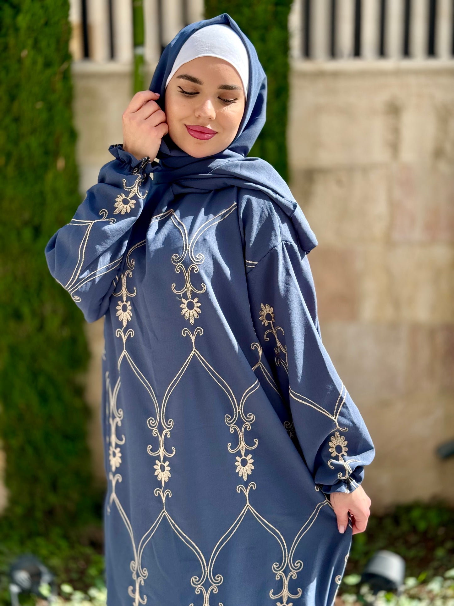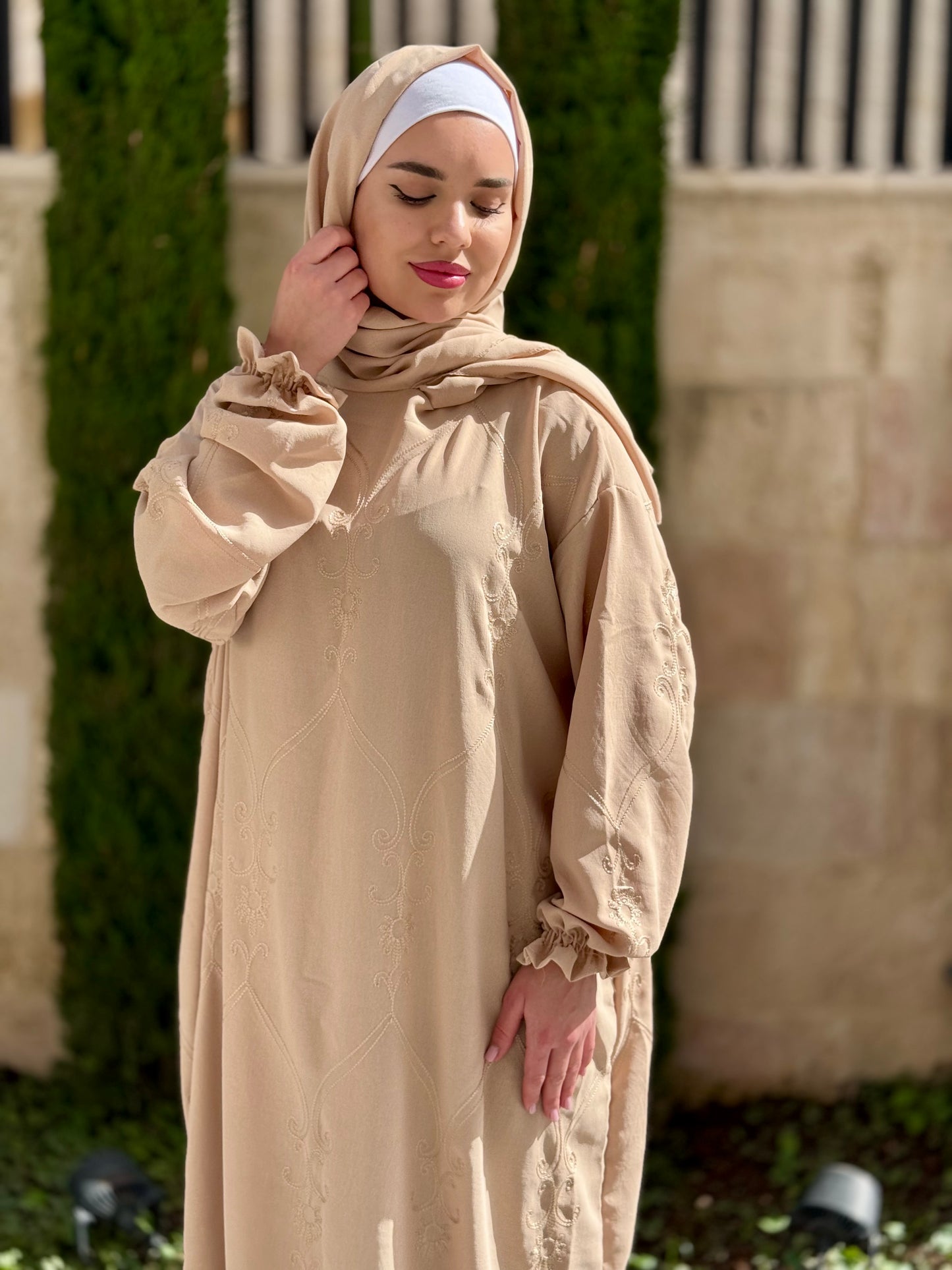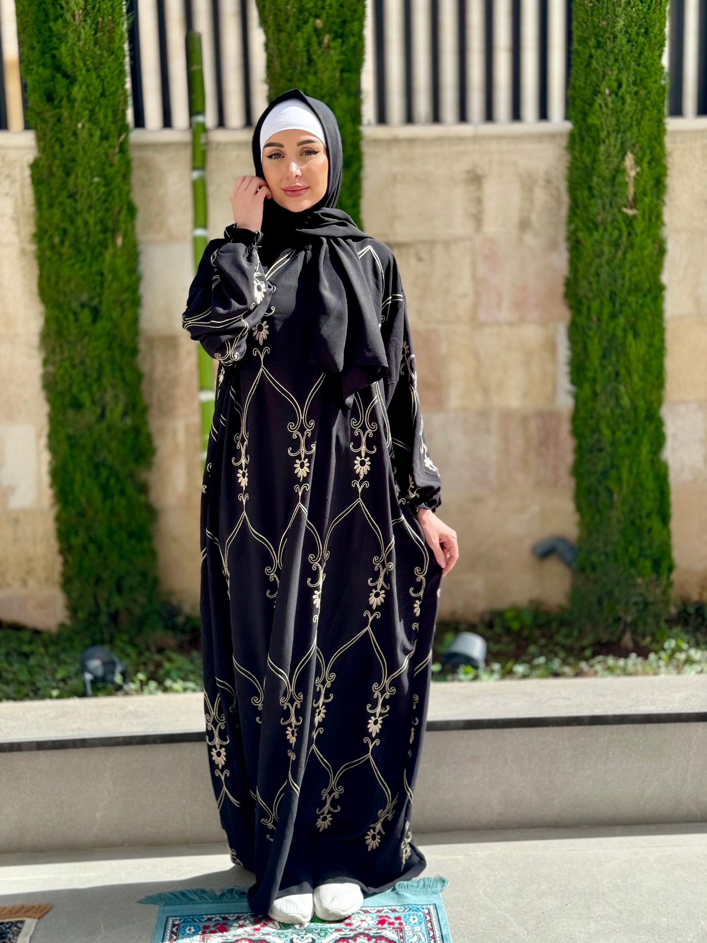 طقم صلاة عملي من مجموعتنا العصرية والأنيقة من أطقم الصلاة، صمم وصنع في الأردن بأفضل أنواع الأقمشة الخفيفة والباردة المعروفة باسم (سي واي) التي لاتَشِف ولا تتأثر بالغسيل وبألوانها العصرية والمميزة. مكون من قطعه واحدة مطرزة بأكمام متصل به شال سادة غير قابل للإزالة، طول القطعة من رأس الكتف 146 سم ومحيط عرضها 150 سم. وطول الشال 160 سم وعرضه 55 سم