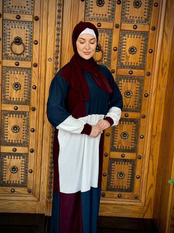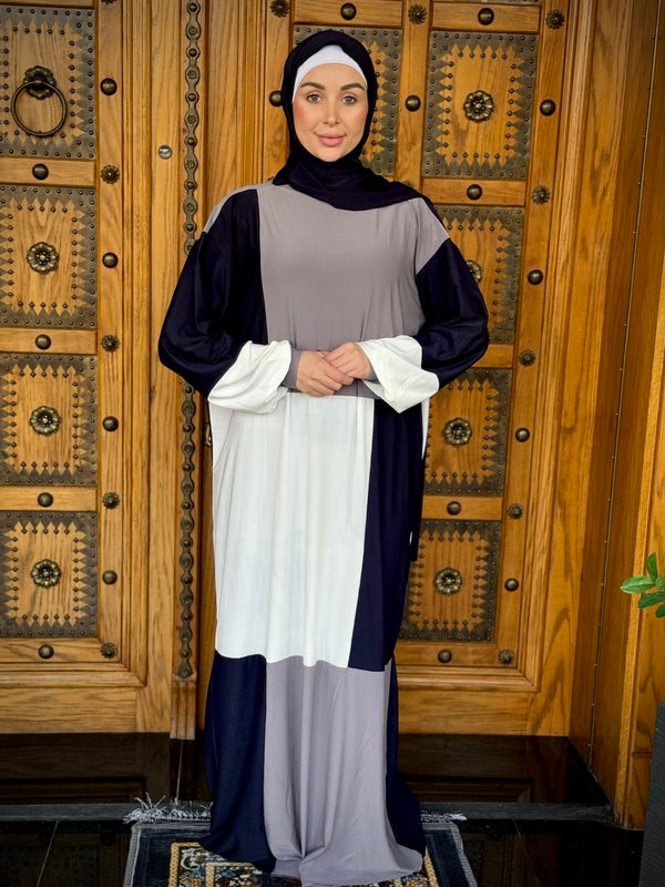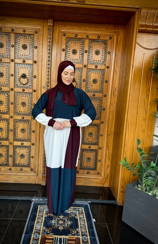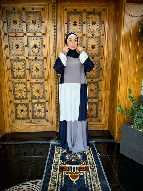 طقم صلاة عملي من مجموعتنا العصرية والأنيقة من أطقم الصلاة، صمم وصنع في الأردن بأفضل أنواع الأقمشة الخفيفة والباردة المعروفة باسم (الليكرا) التي لاتَشِف ولا تتأثر بالغسيل وبألوانها العصرية والمميزة. مكون من قطعه واحدة بأكمام متصل به شال غير قابل للإزالة، طول القطعة من رأس الكتف 145 سم ومحيط عرضها 155 سم. وطول الشال 160 سم وعرضه 60 سم