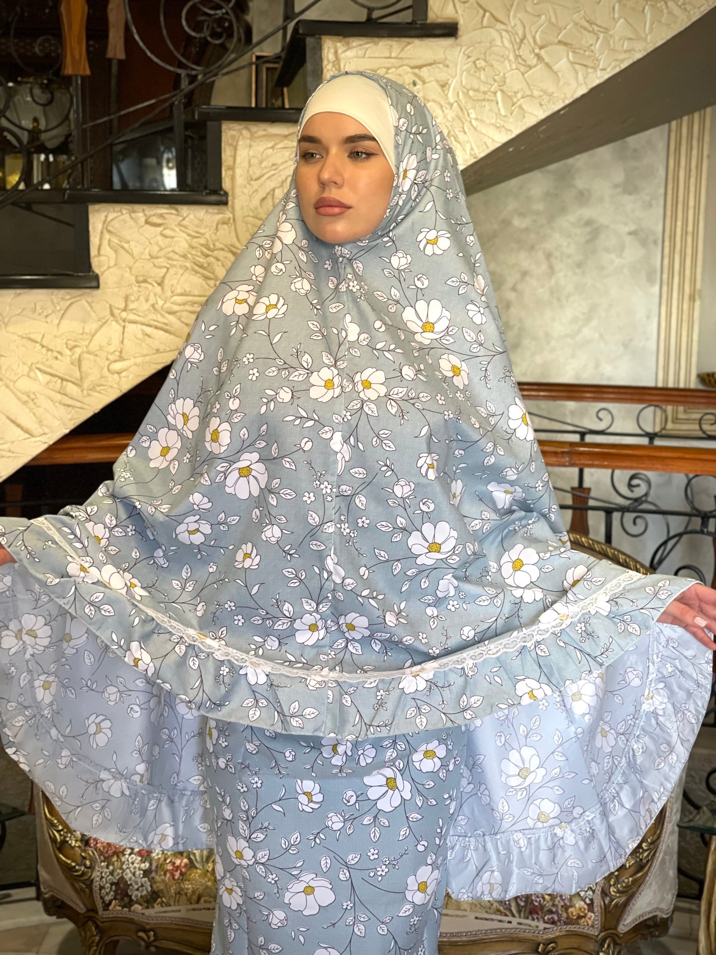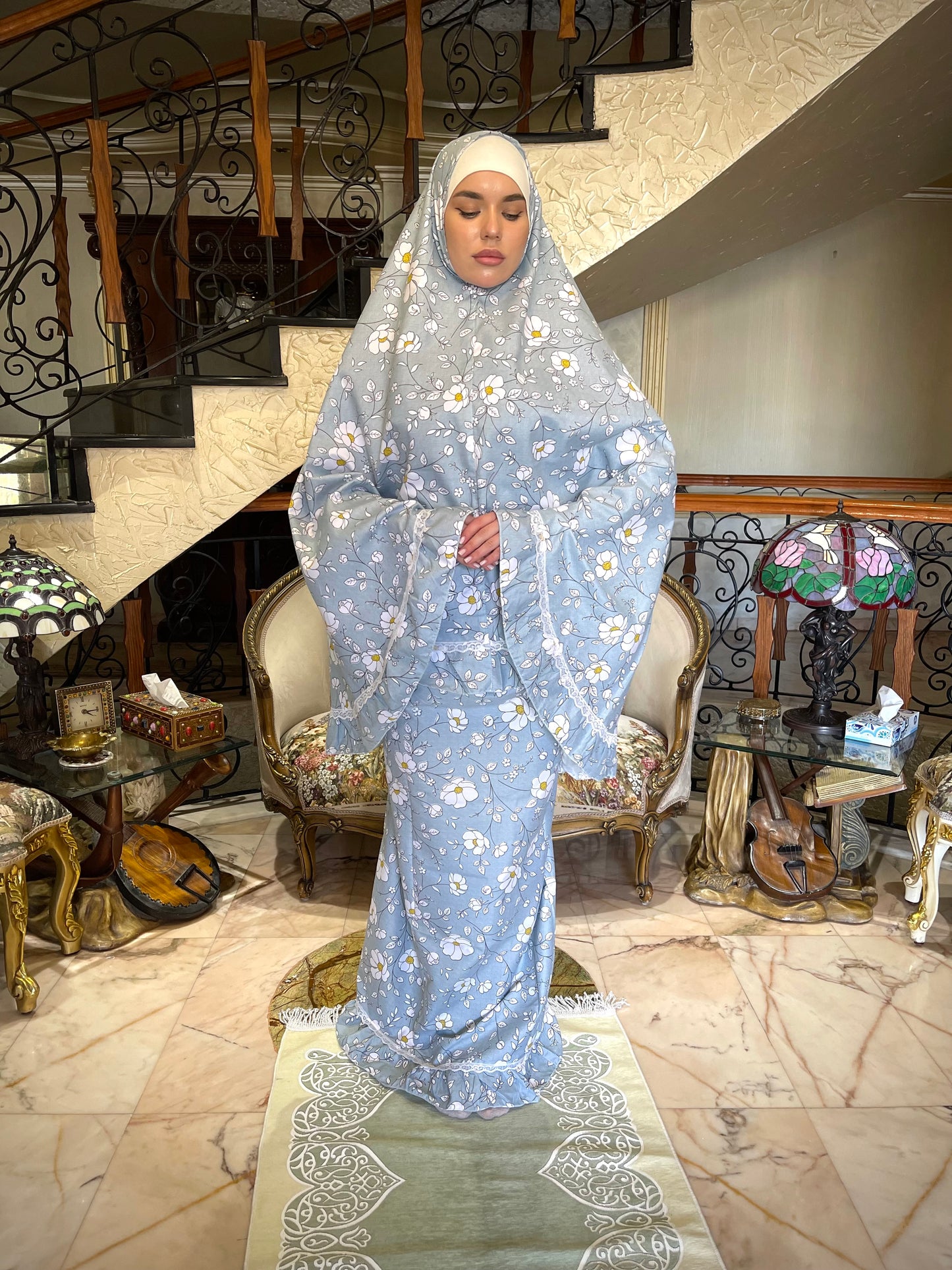 شاهدي أحدث تشكيلة من مجموعة الكرم قادري لأطقم الصلاة العملية والمريحة، واحصلي على هذا الموديل الذي يناسب جميع الأحجام، صمم وصنع في الجمهورية العربية السورية بأفضل أنواع الأقمشة الخفيفة والباردة التي لا تتأثر بالغسيل، قماش قطن مطبع بألوان أنيقة وعديدة