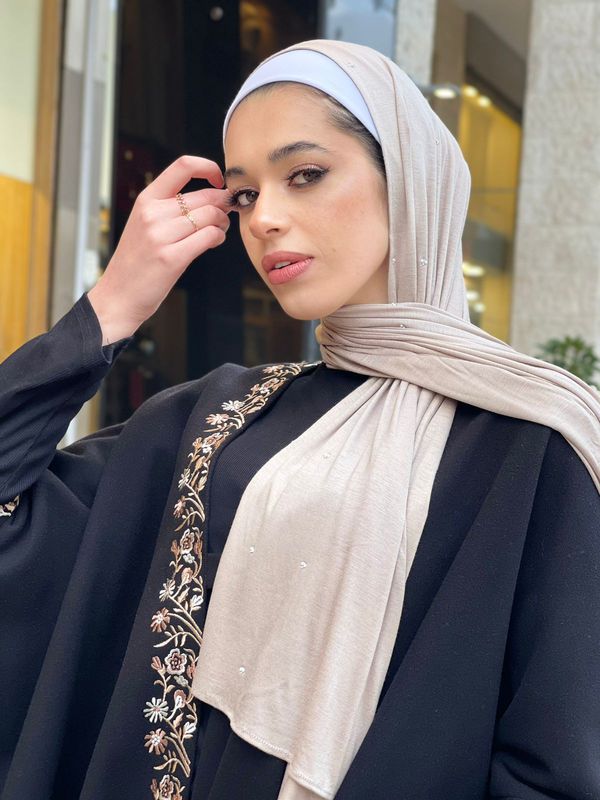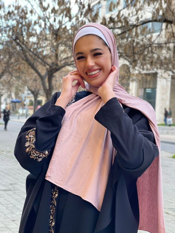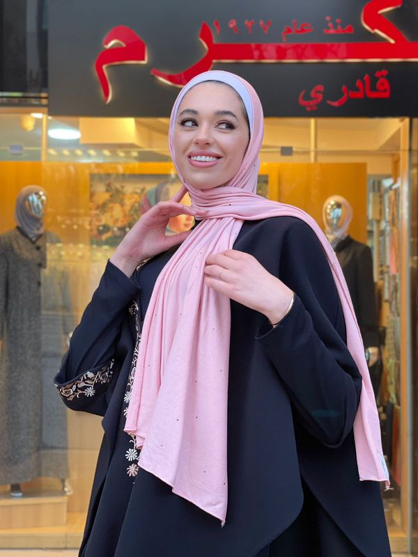 "التألق الأردني" هو عنوان يثير شعوراً بالفخامة والرقي، مما يوحي بأن هذا الوشاح هو أكثر من مجرد إكسسوار بسيط. وهو مزين بالستراس، مما يضيف لمسة من السحر والأناقة إلى تصميمه. هذا المزيج من العملية والفخامة يسلط الضوء على تنوع الوشاح، وهو مناسب للارتداء اليومي والمناسبات الخاصة. إن الجودة والاهتمام بالتفاصيل التي تدخل في صناعة كل قطعة، تزيد من جاذبيتها للعملاء الذين يبحثون عن إكسسوارات متميزة طولة 170سم وعرضه 70 سم.