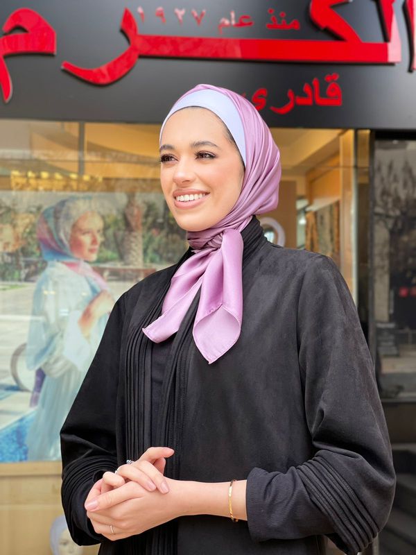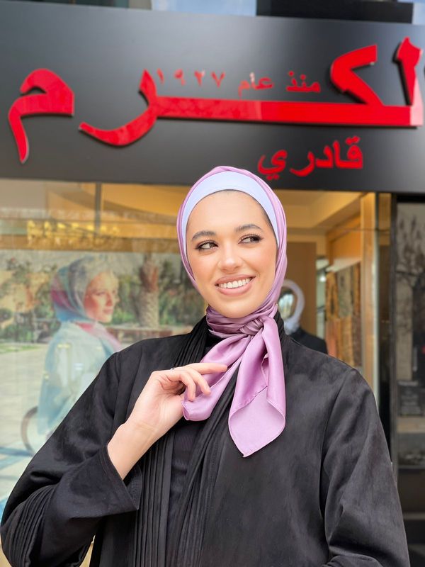 يبلغ طوله وعرضه 90 سم، ويوفر تنوعًا في التصميم، مما يسمح لك بثنيه بسهولة على كتفيك أو لفه حول رقبتك بسهولة. يوفر نسيج الساتان الناعم والحريري ملمسًا فاخرًا على البشرة، مما يضمن الراحة طوال اليوم.