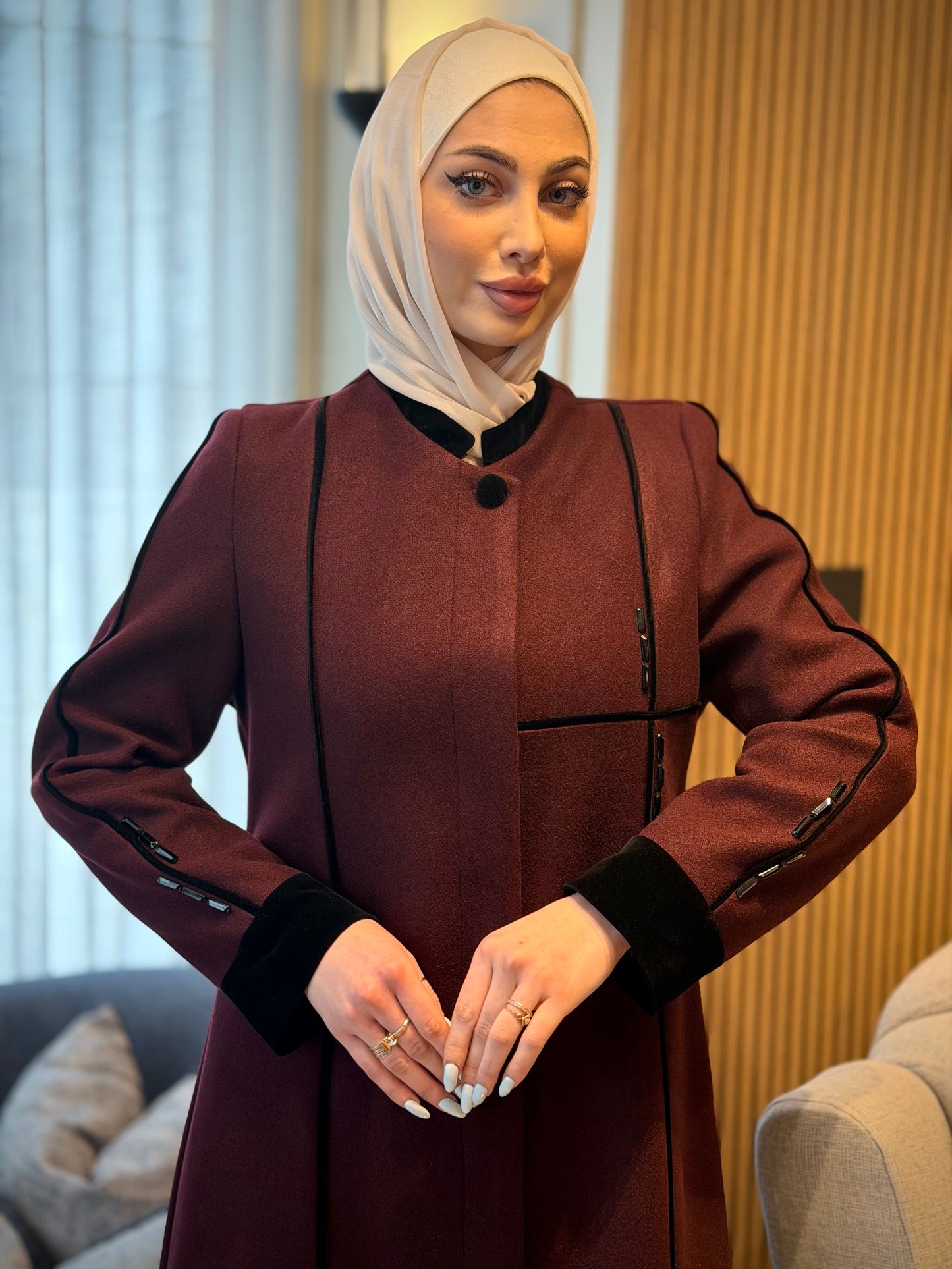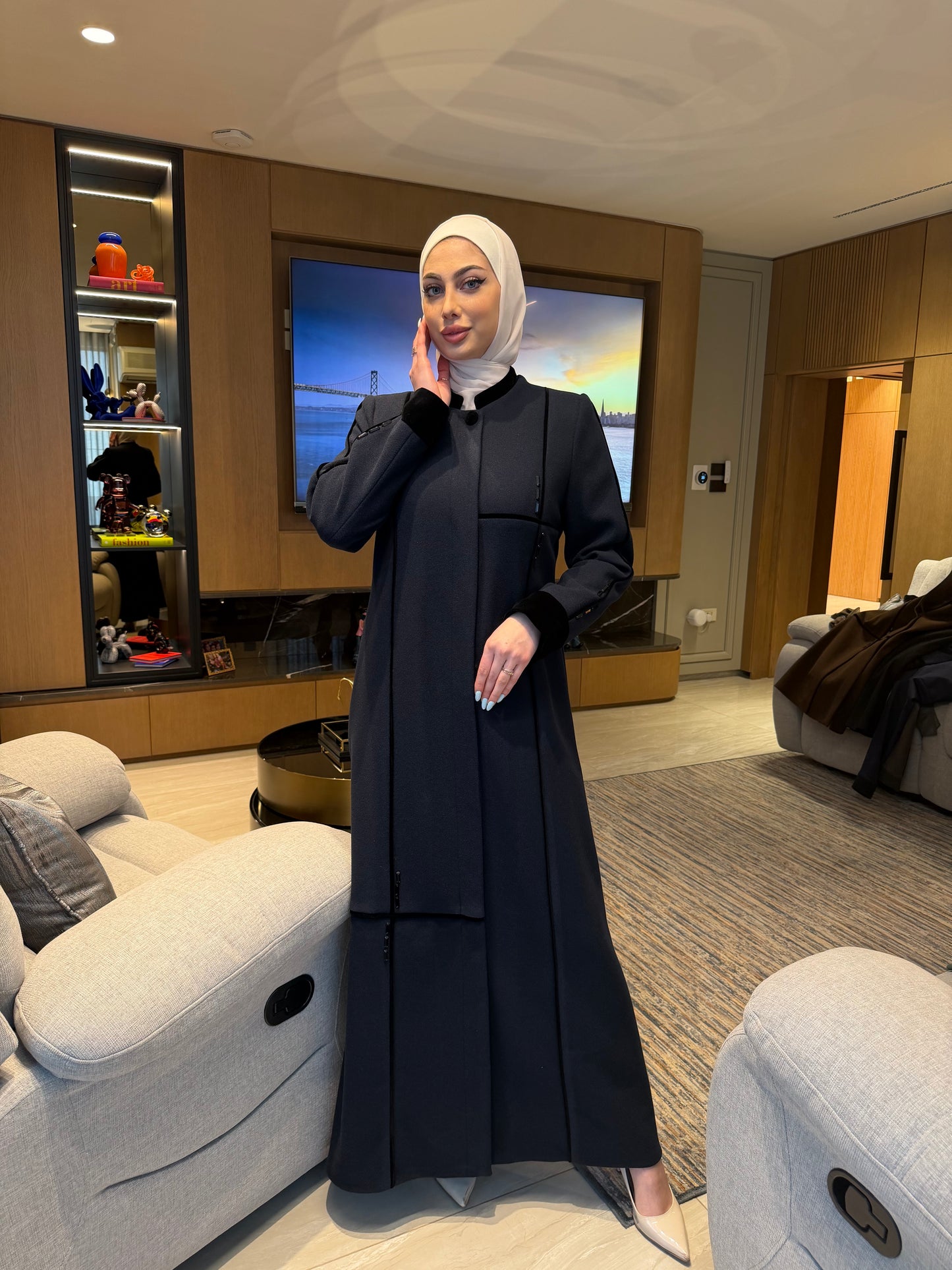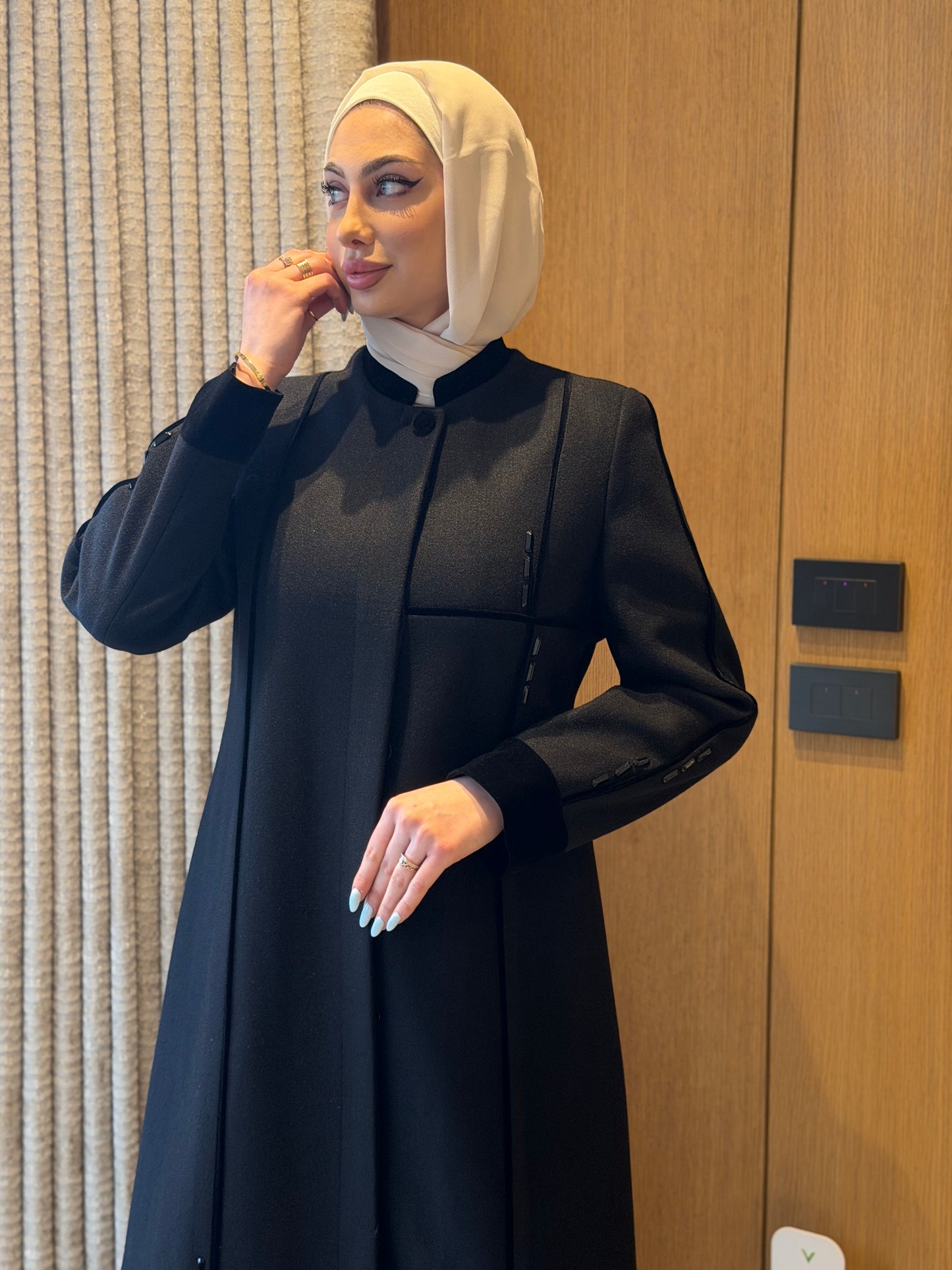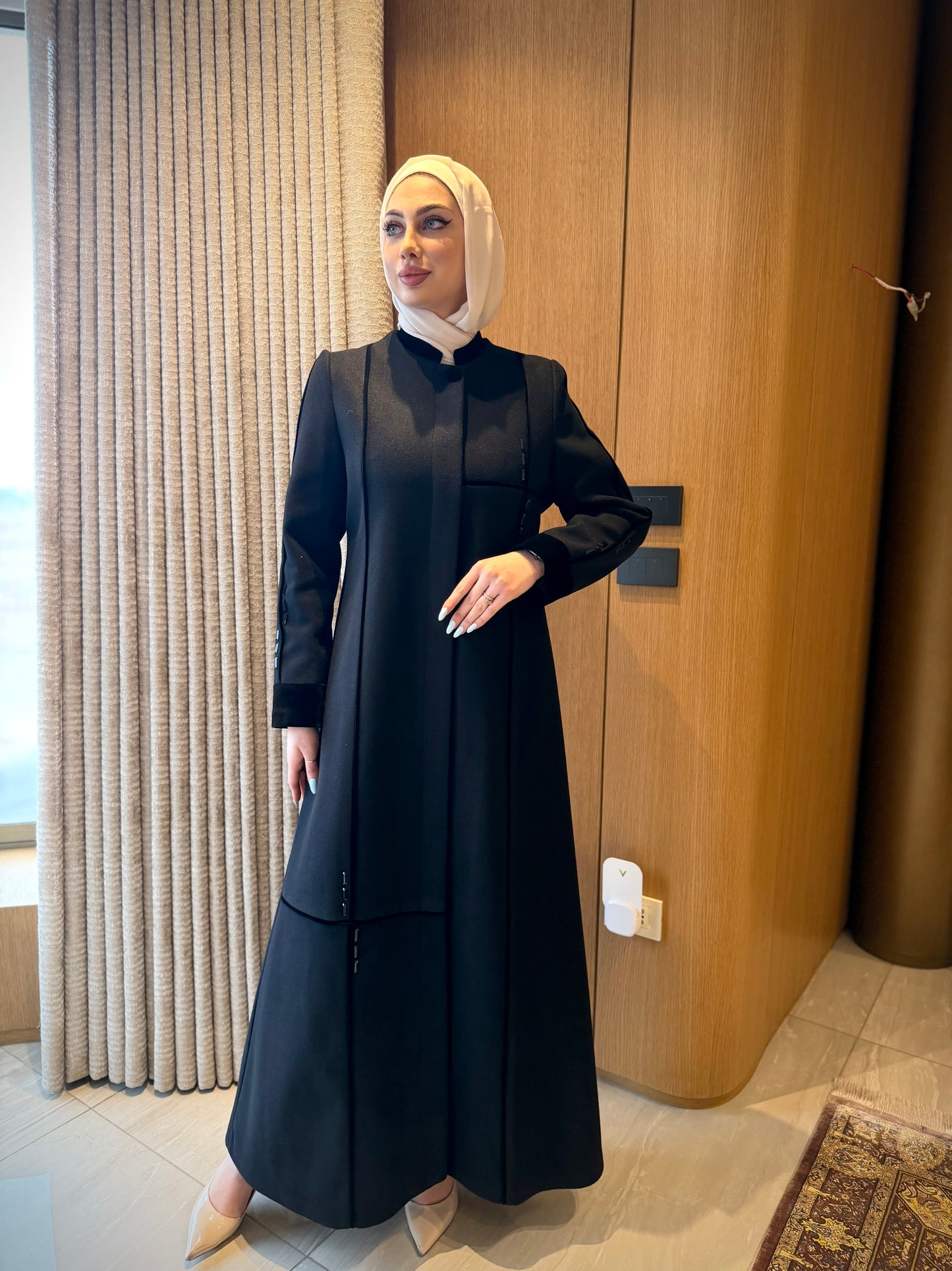 تتميز هذه الجلباب بتصاميم حصرية من الجلابيب والملابس النسائية، تألقي بإطلالة أنيقة مع هذا الجلباب المصنوع من قماش الصوف الفاخر، والمزين بتفاصيل مخملية عصرية وتطريزات من أحجار الراين.