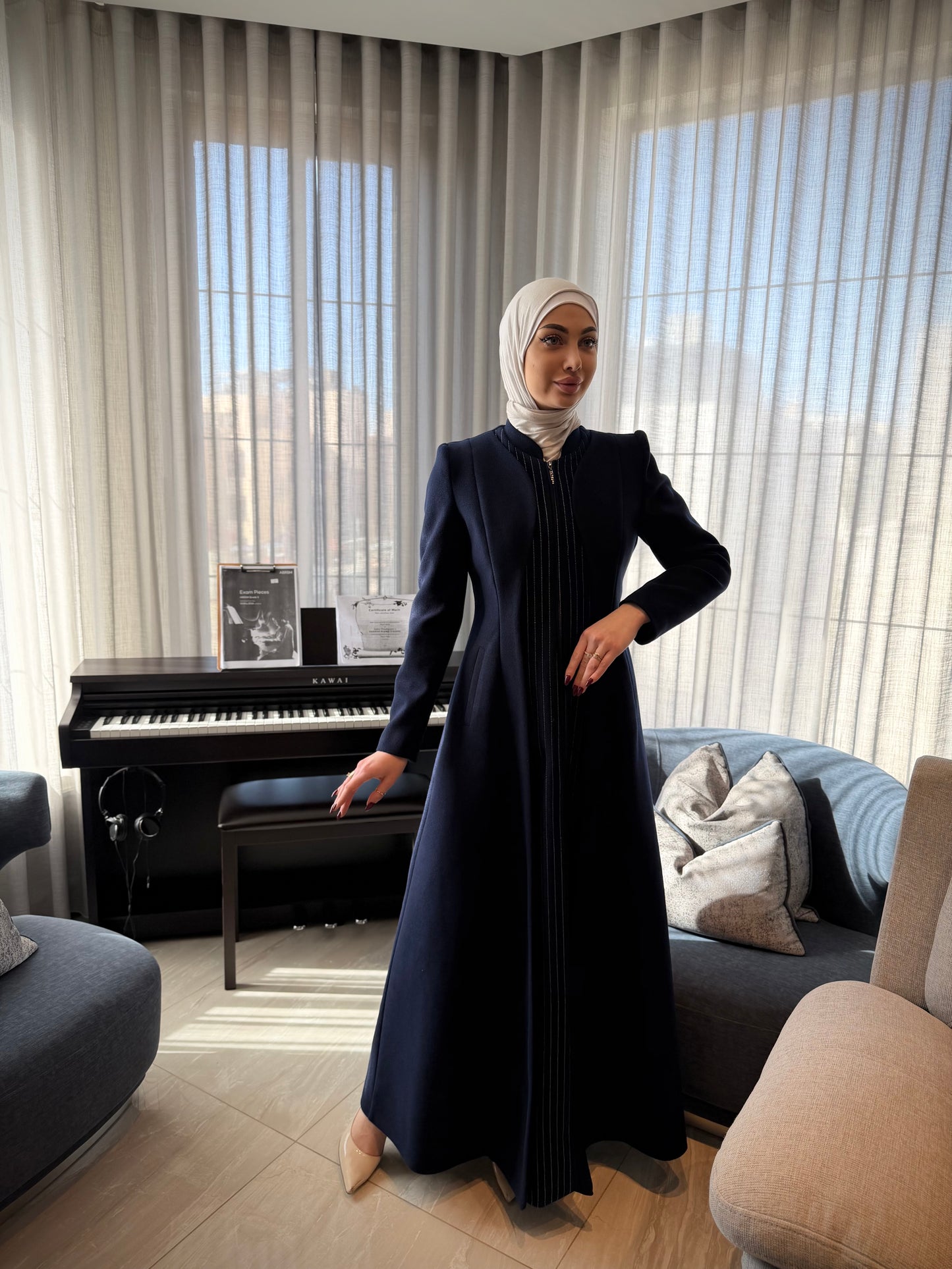 جلباب جوخ قطعة واحدة مصمم للراحة والعملية، ويتميز بتفاصيل أمامية أنيقة تضيف لمسة راقية