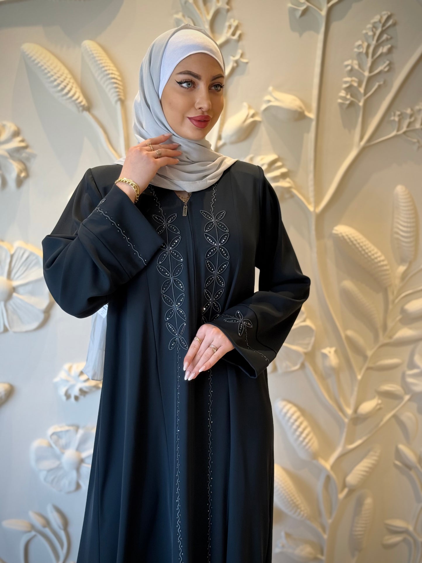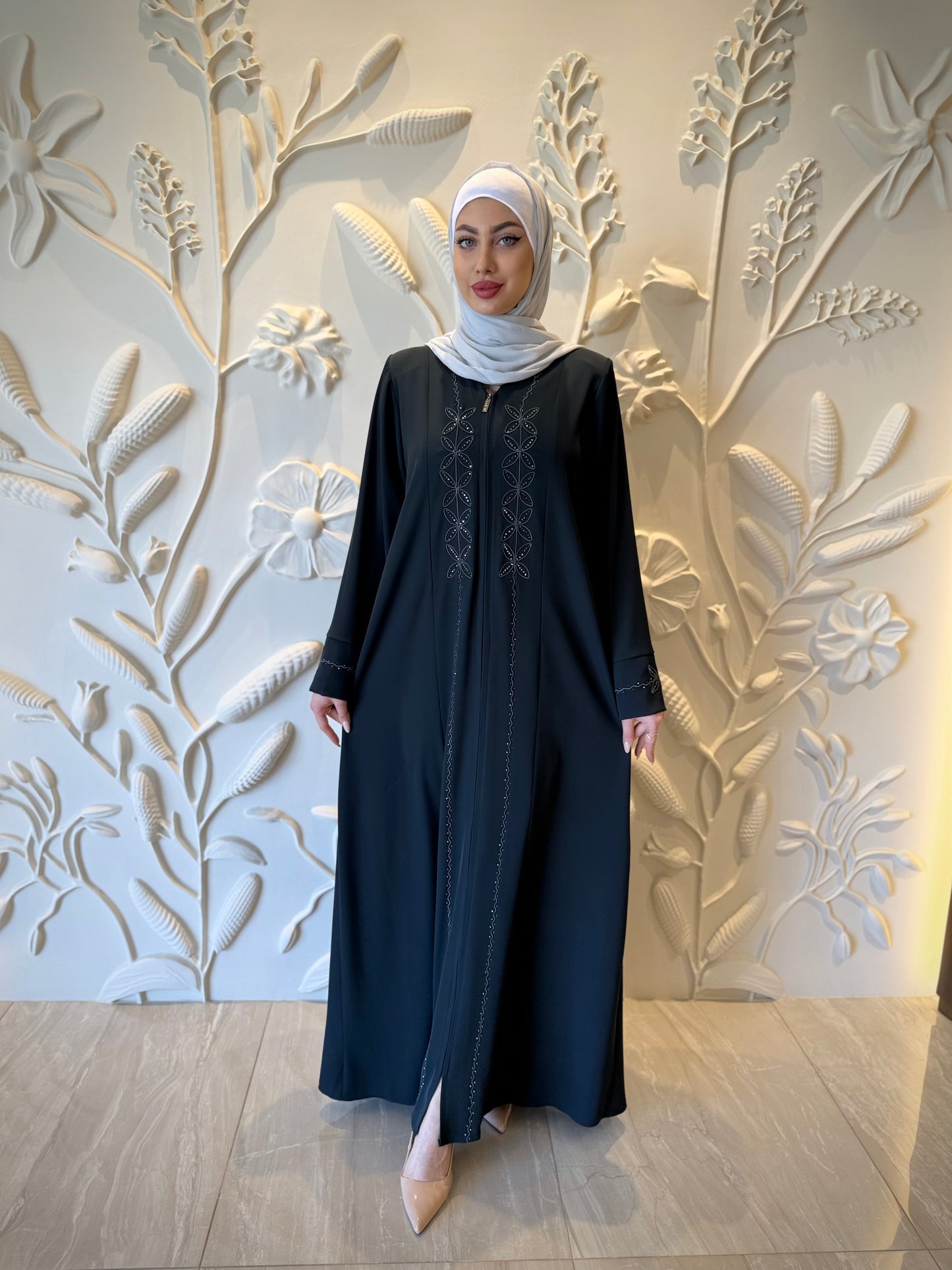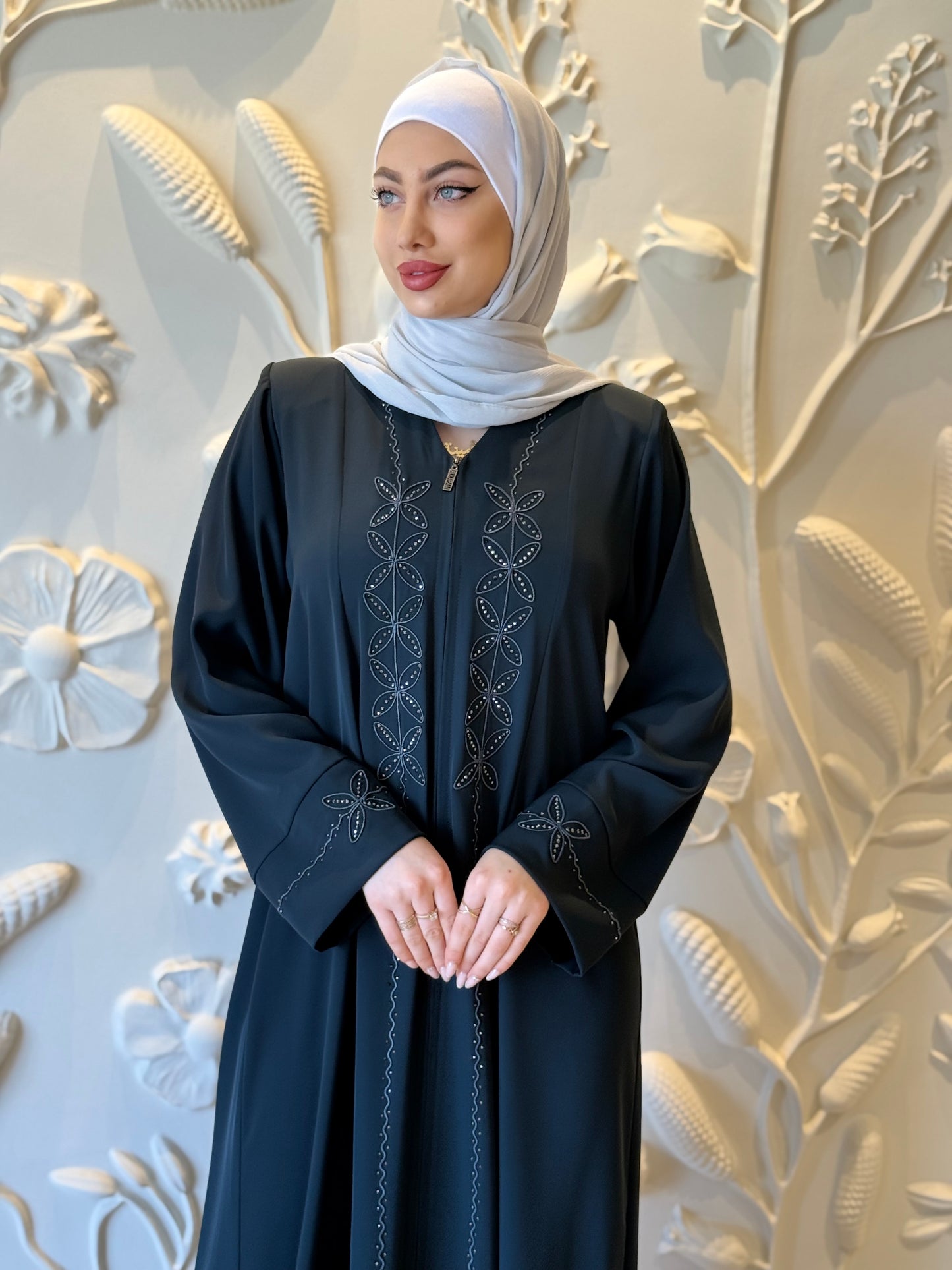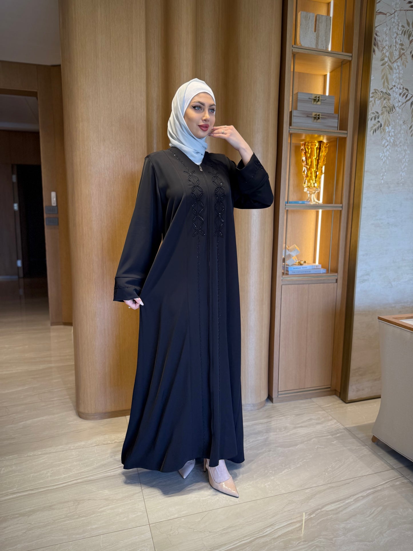 Chic Summer Abaya with Embroidery And Rhinestones