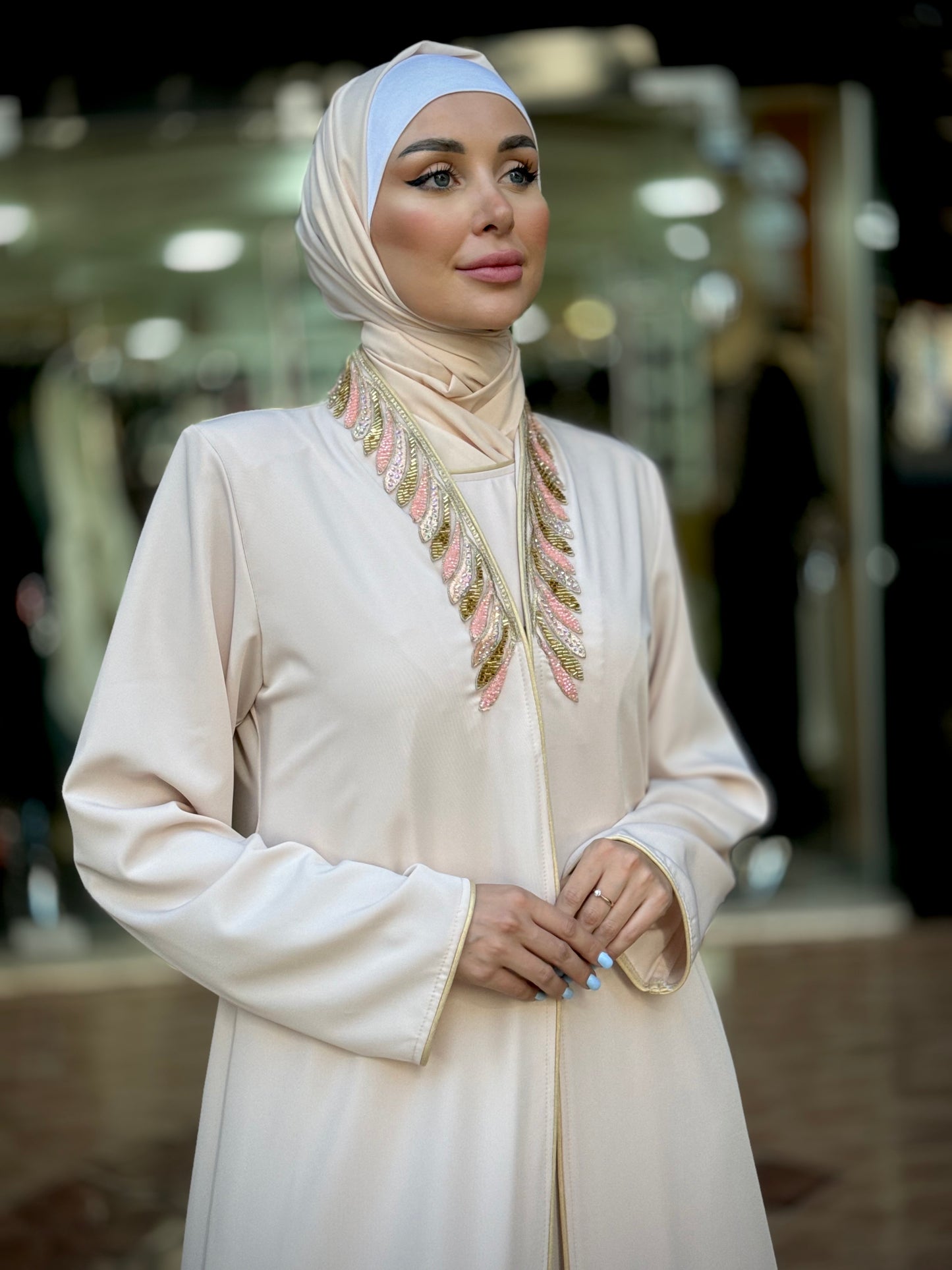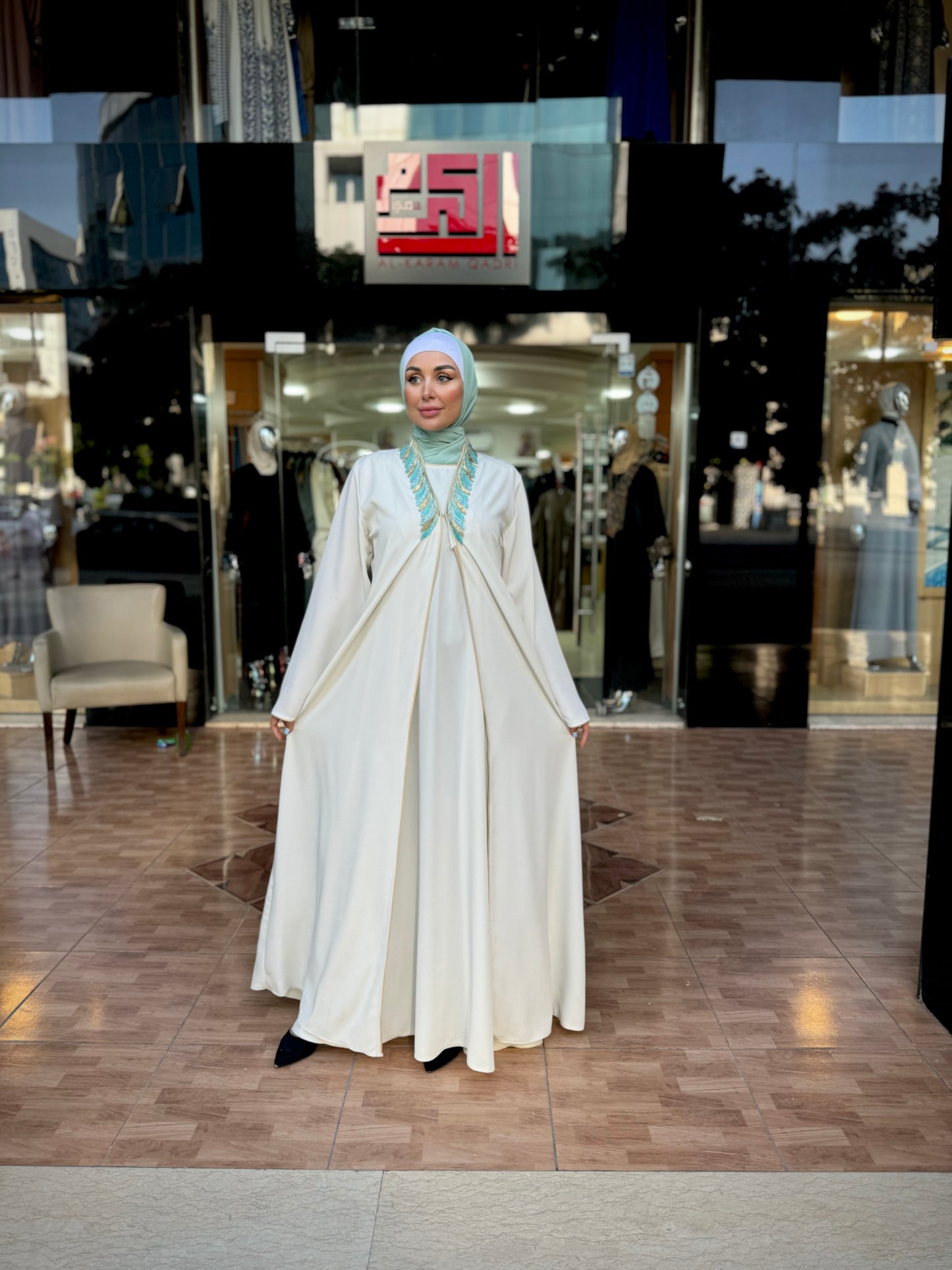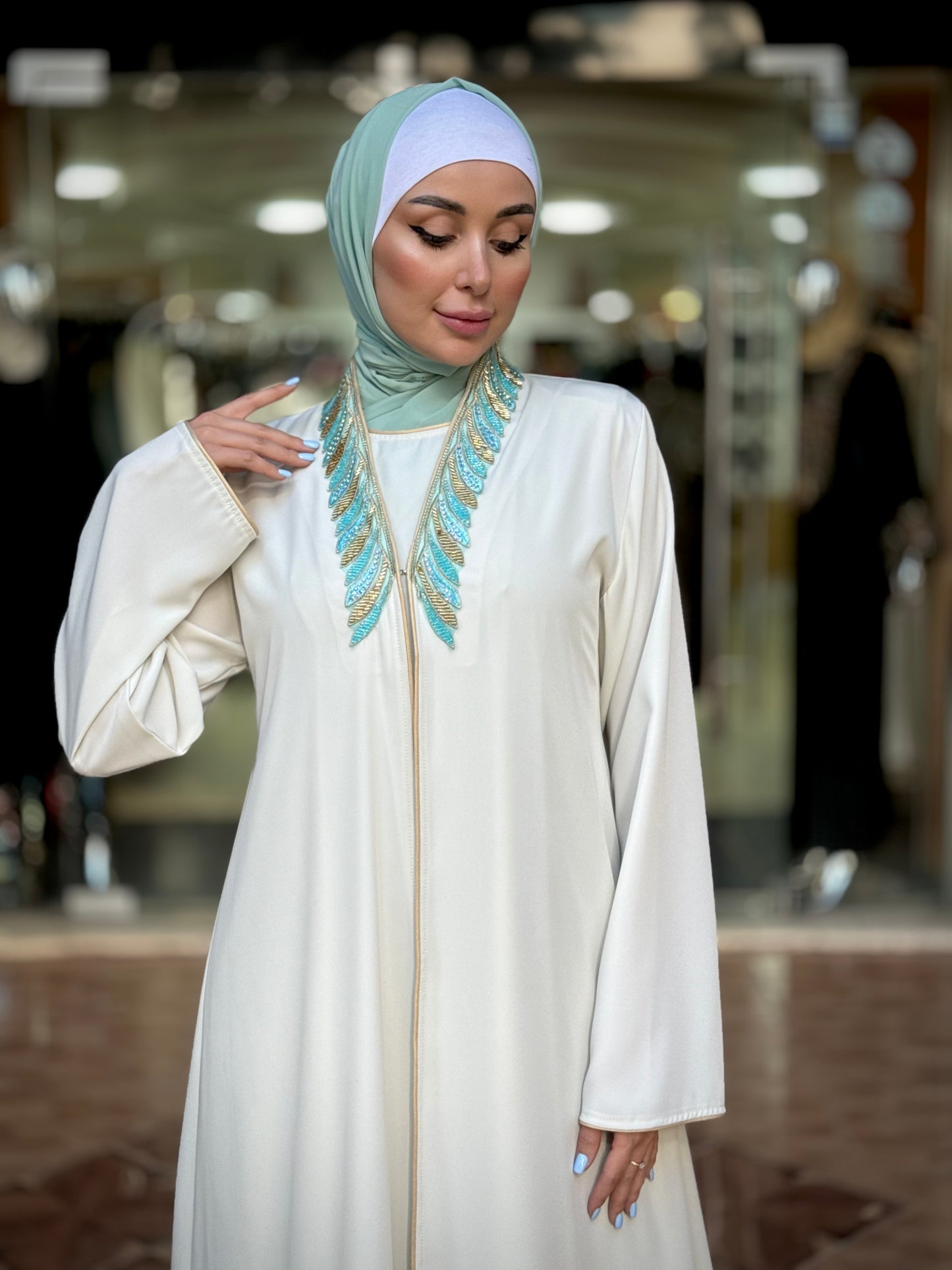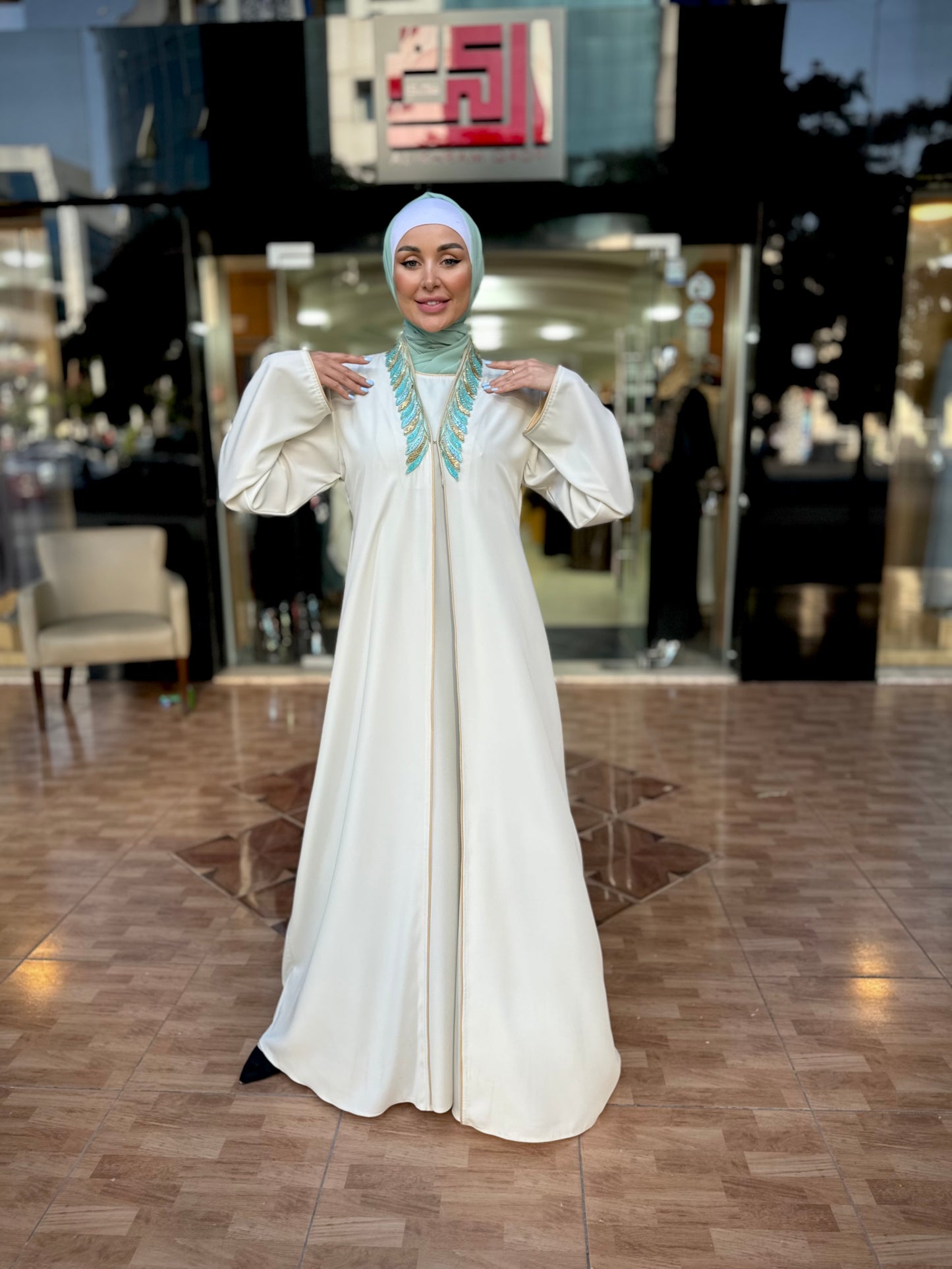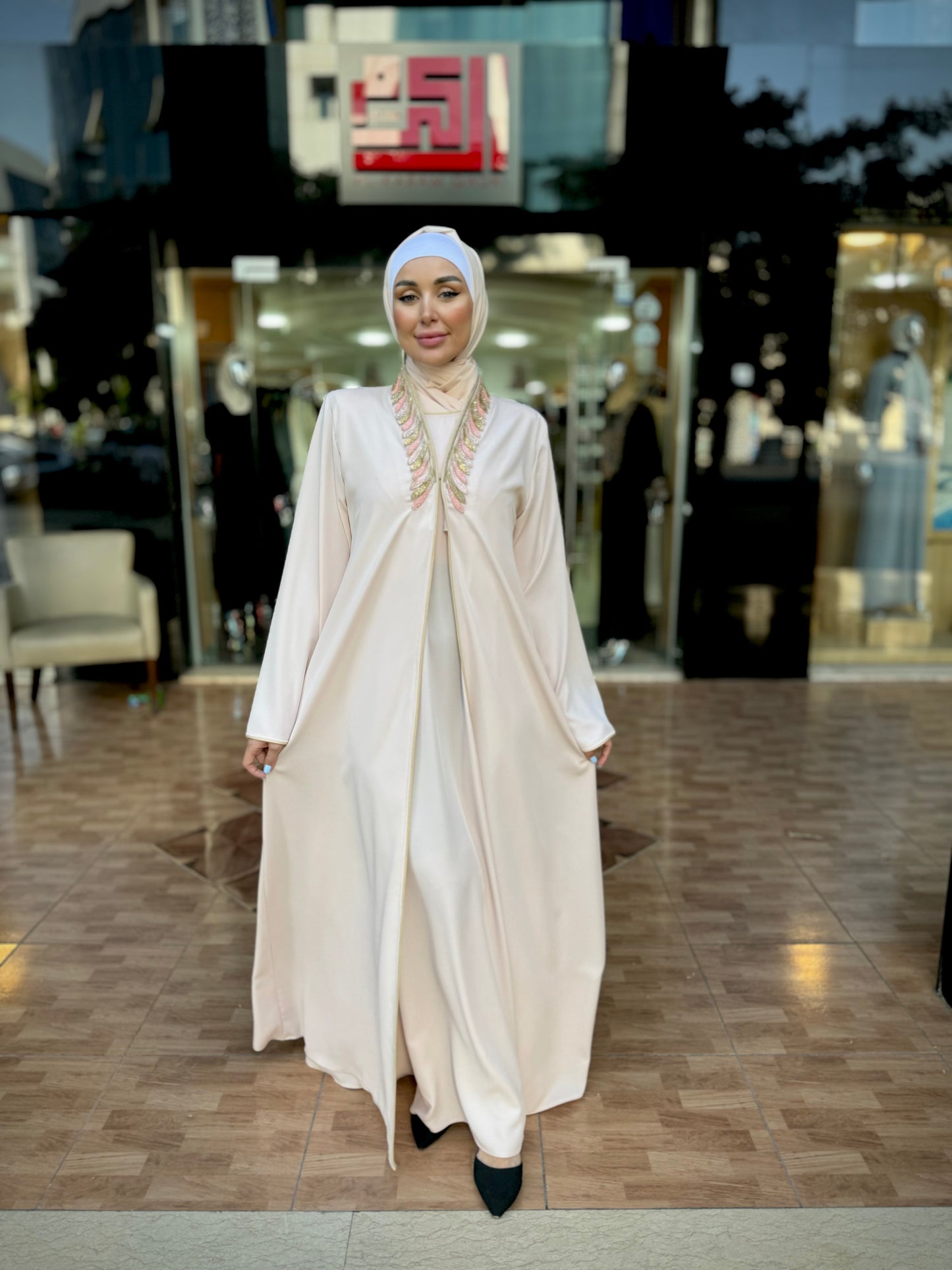 Regular price $48.99 USDStand out with elegance and distinction in this colorful layered abaya, crafted from Prada fabric. It features modern trim details on the collar and sleeves, offering a unique and distinguished look from our chic and contemporary collection. Designed and made in Jordan using high-quality fabrics.