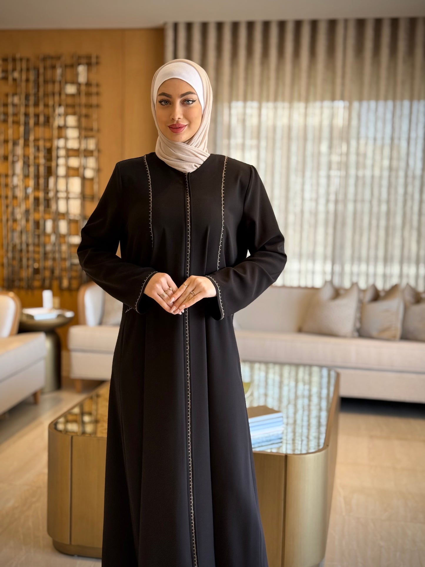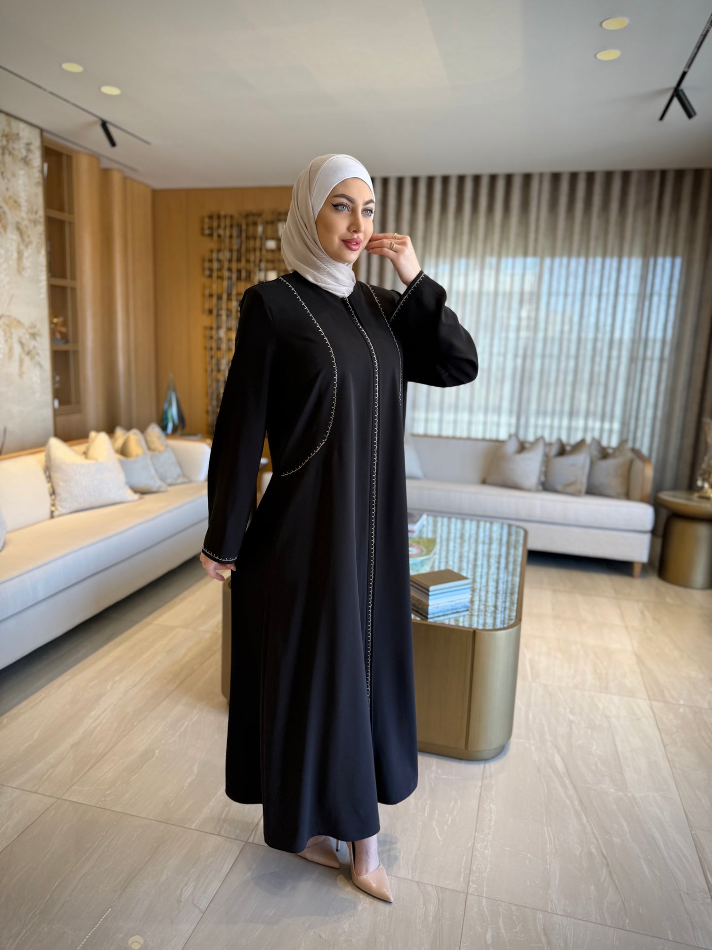 Stand out in this abaya, crafted from high-quality Local Market fabric and embellished with modern embroidery details.
