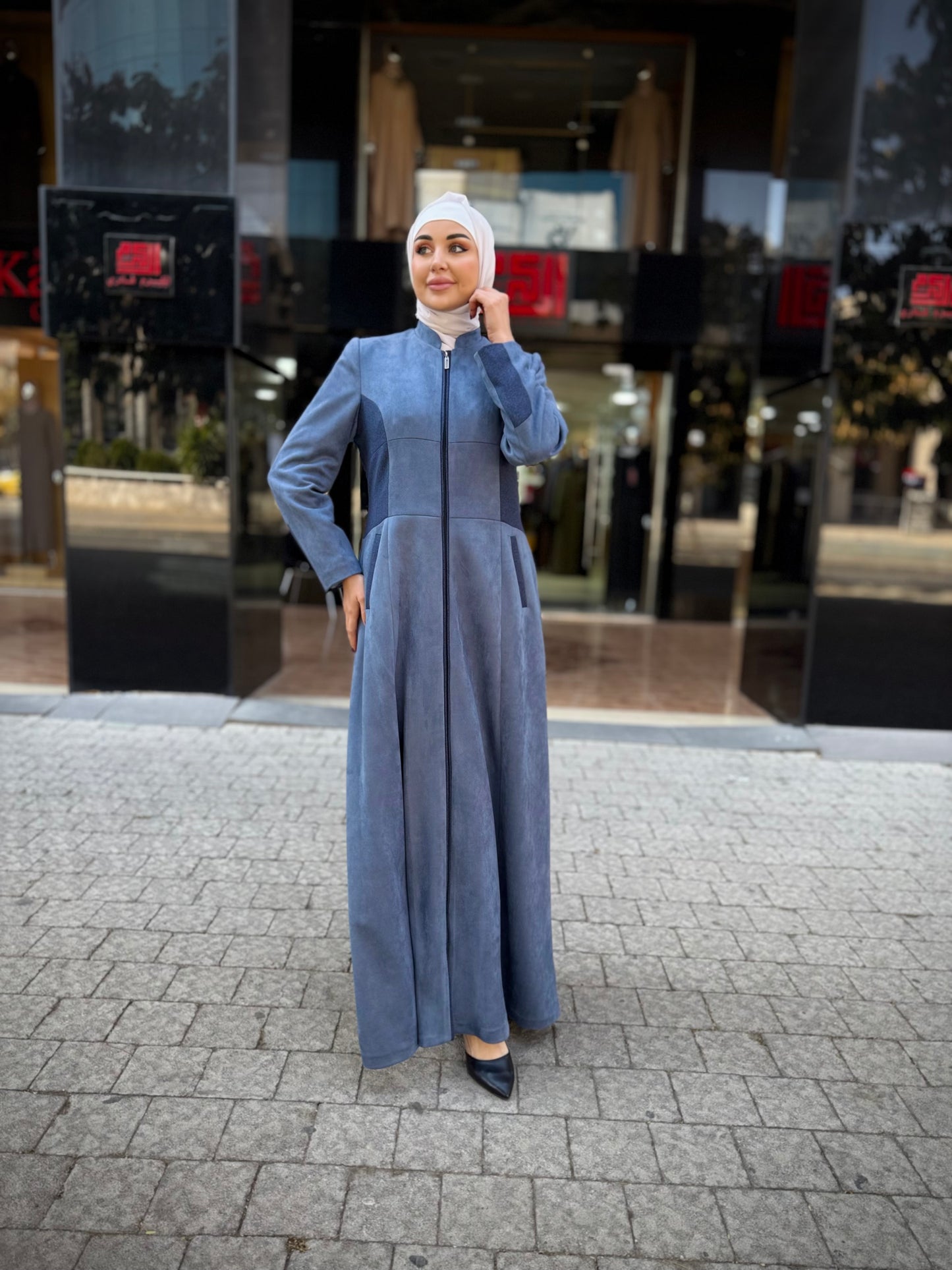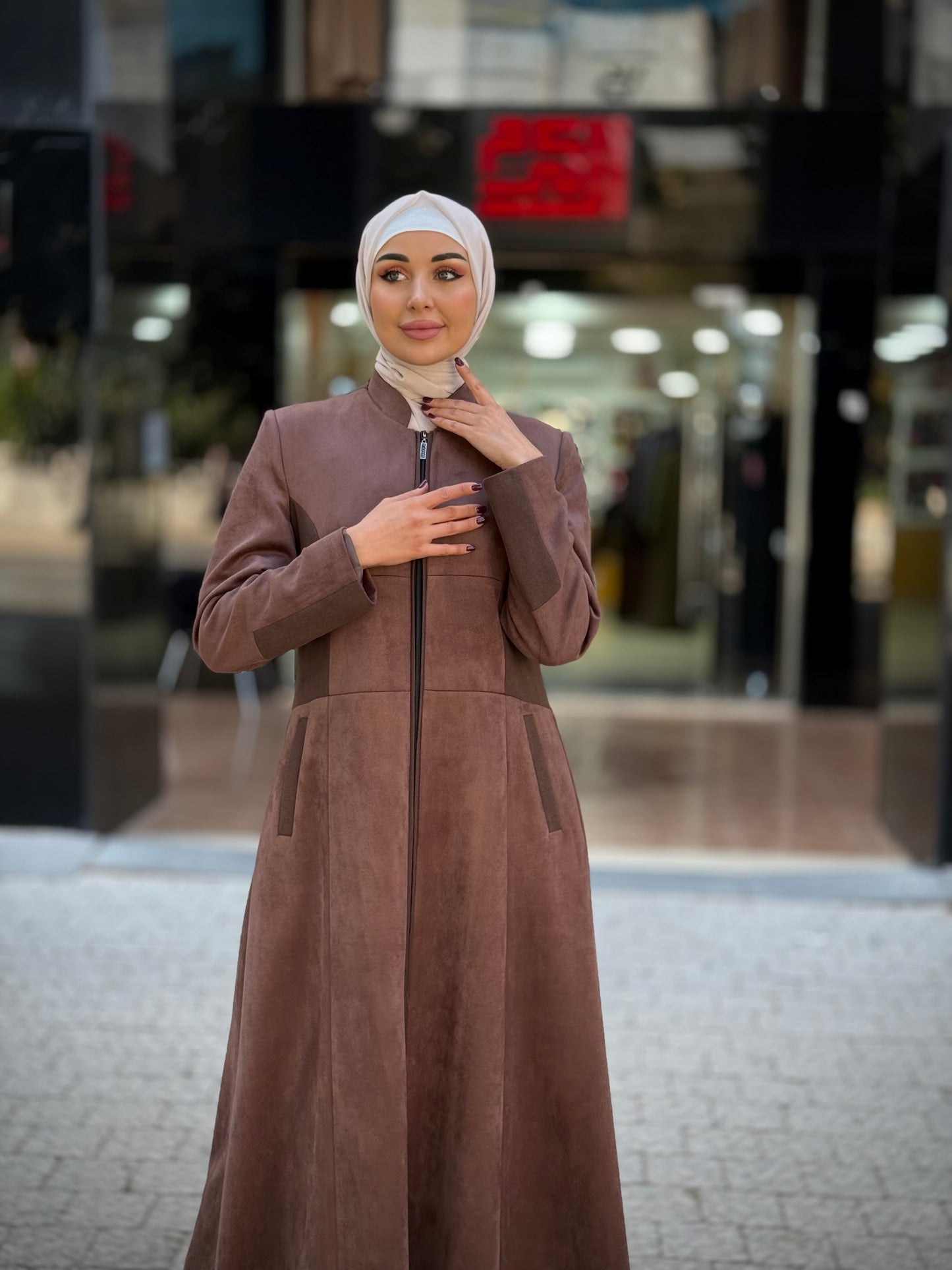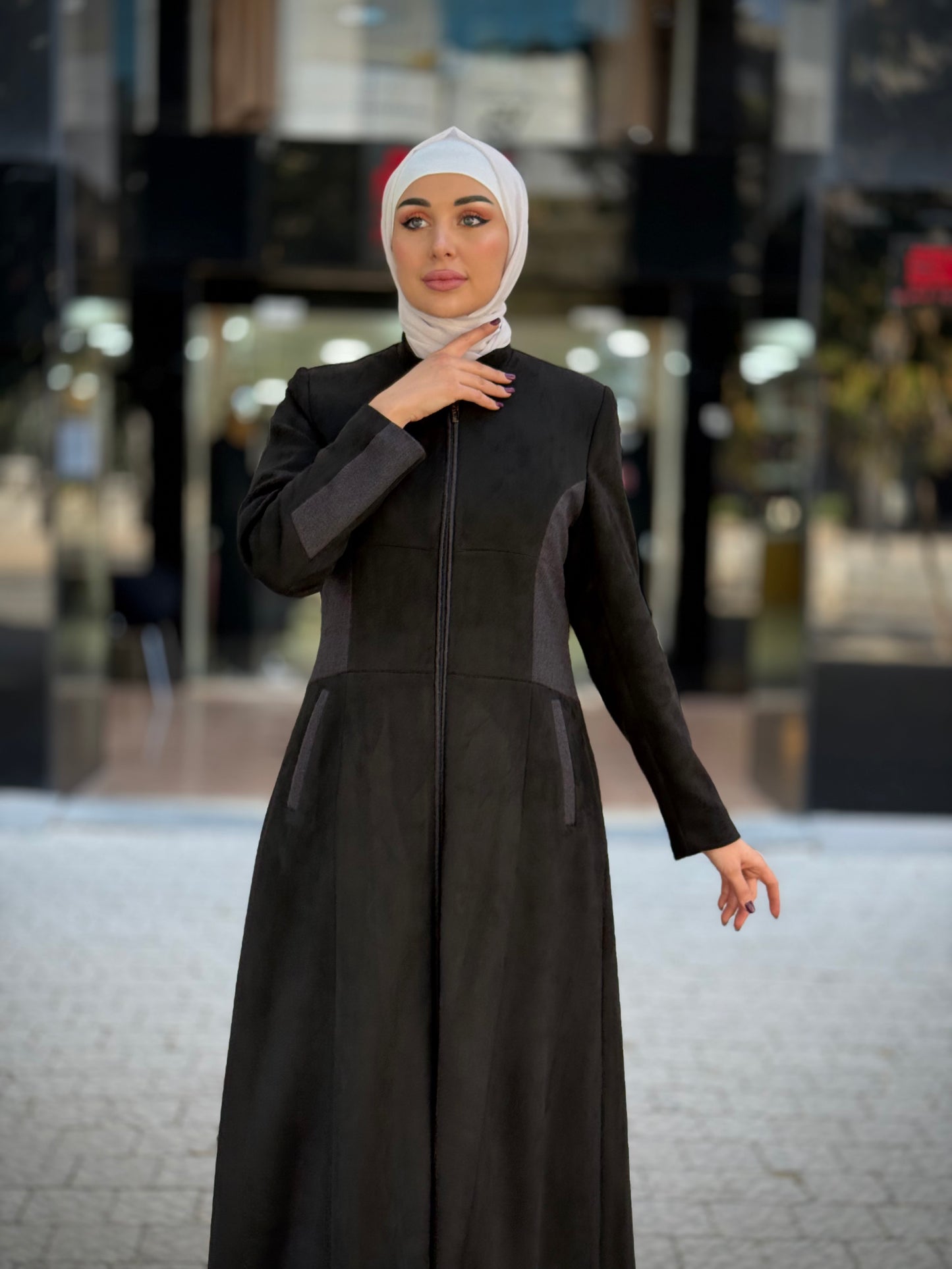 Shine with a modern and stunning look from Al Karam Qadri, featuring the largest exclusive collection of modest wear. Stand out with this quilted suede jilbab , distinguished by its blend of suede and wool fabrics.