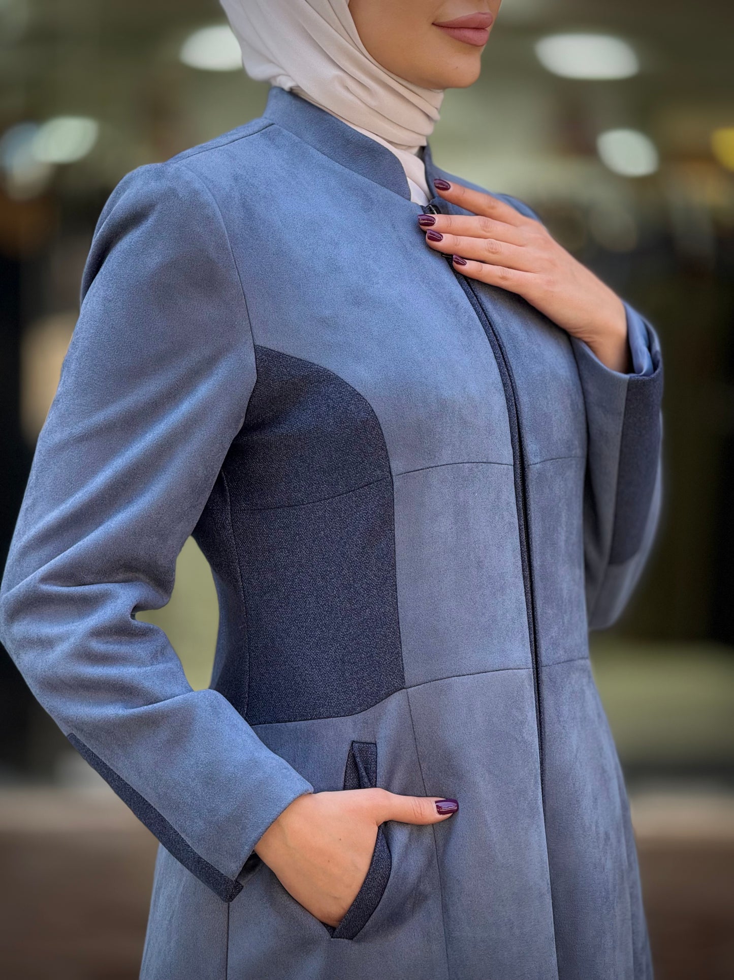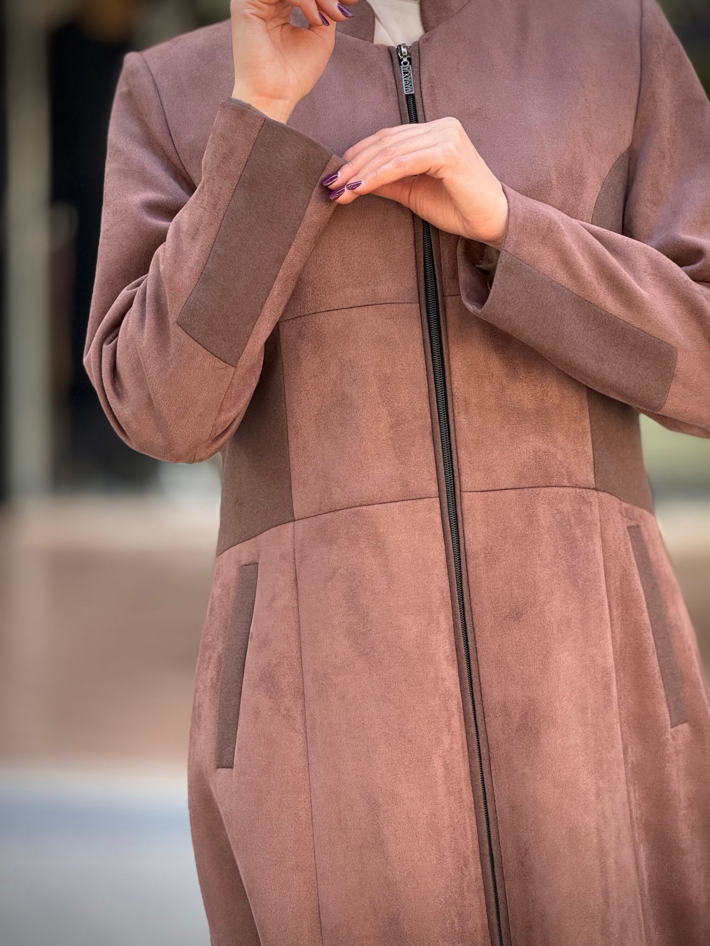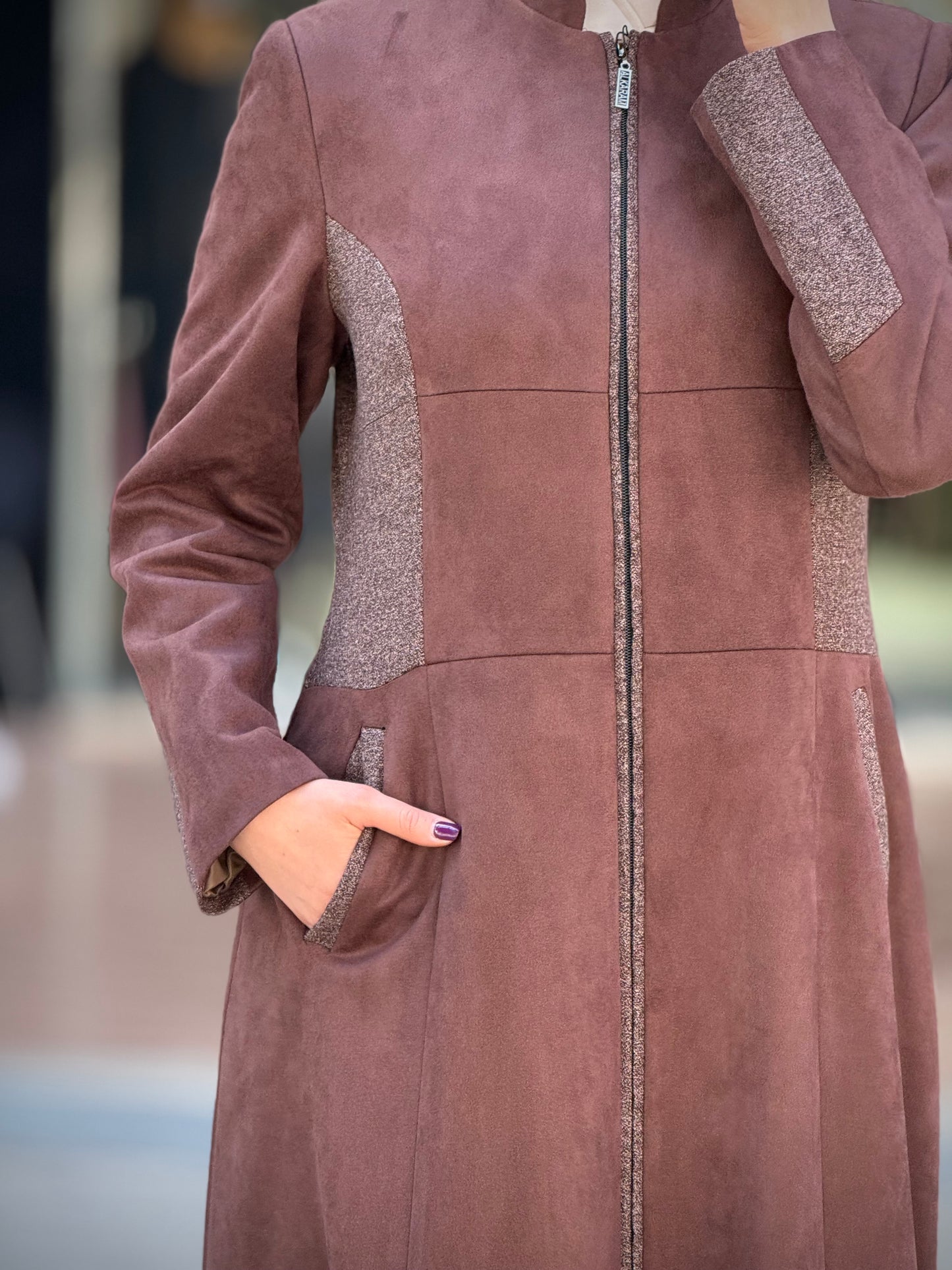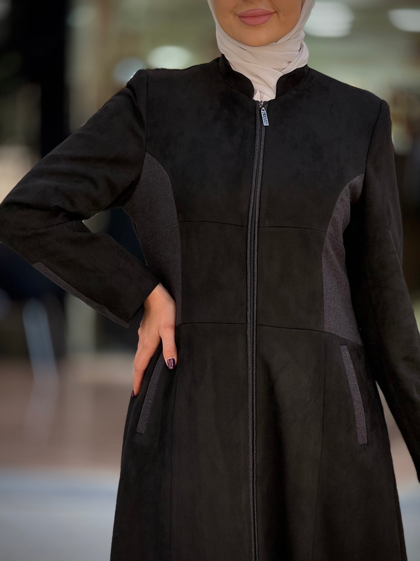 Shine with a modern and stunning look from Al Karam Qadri, featuring the largest exclusive collection of modest wear. Stand out with this quilted suede jilbab , distinguished by its blend of suede and wool fabrics.