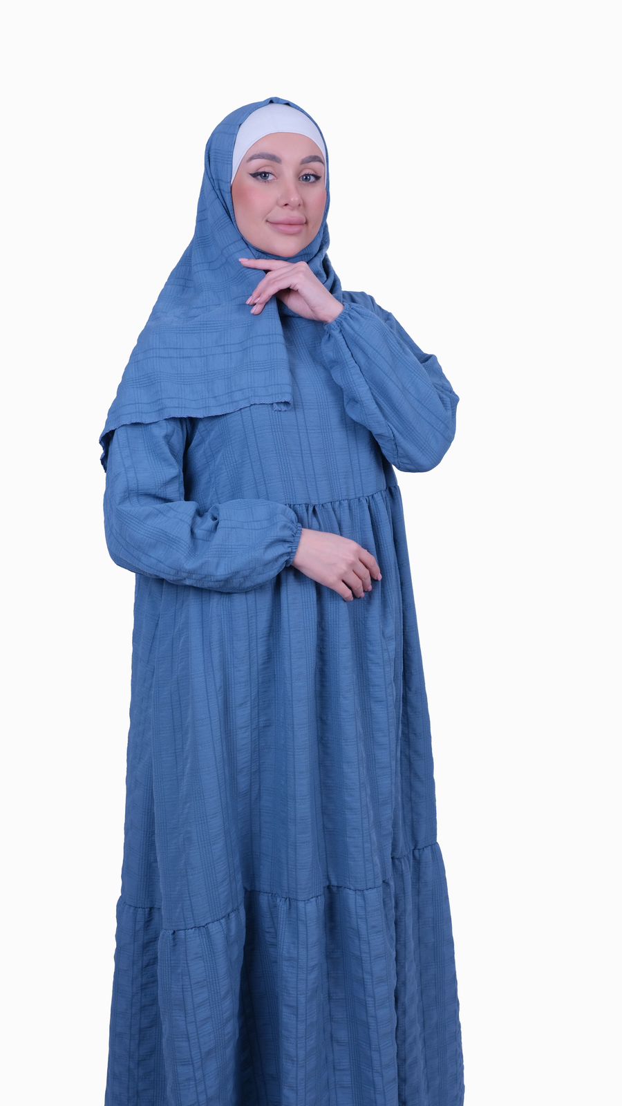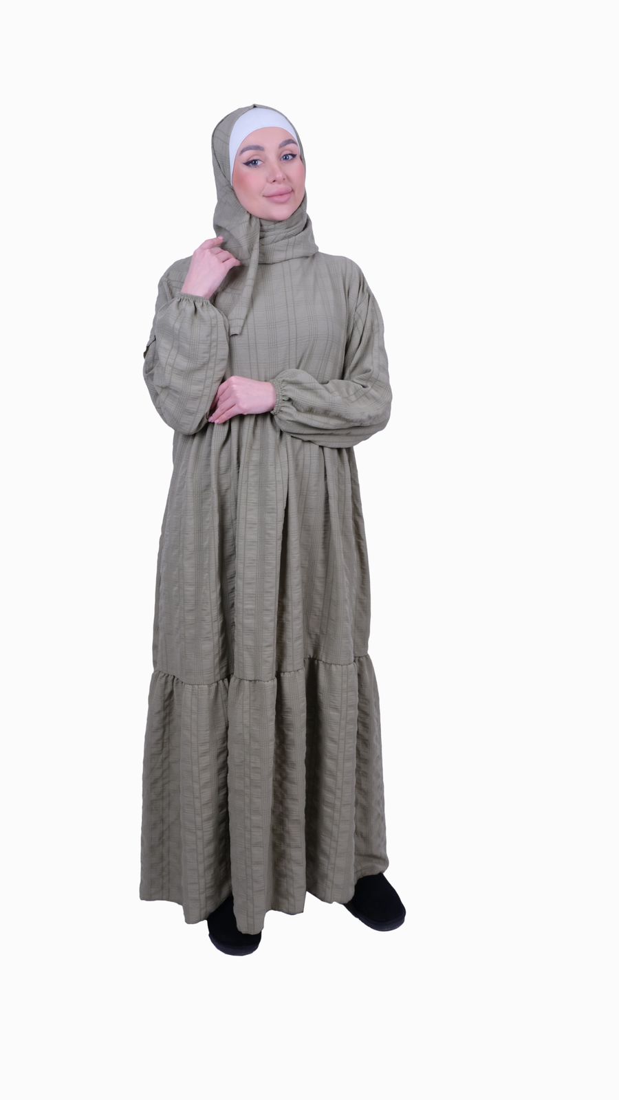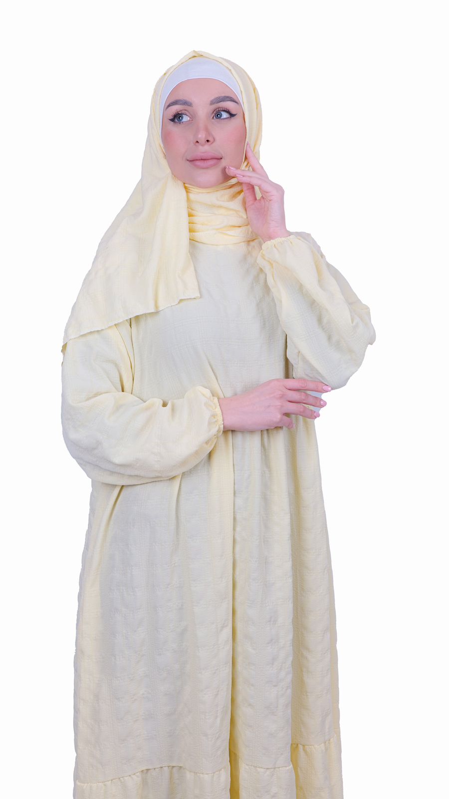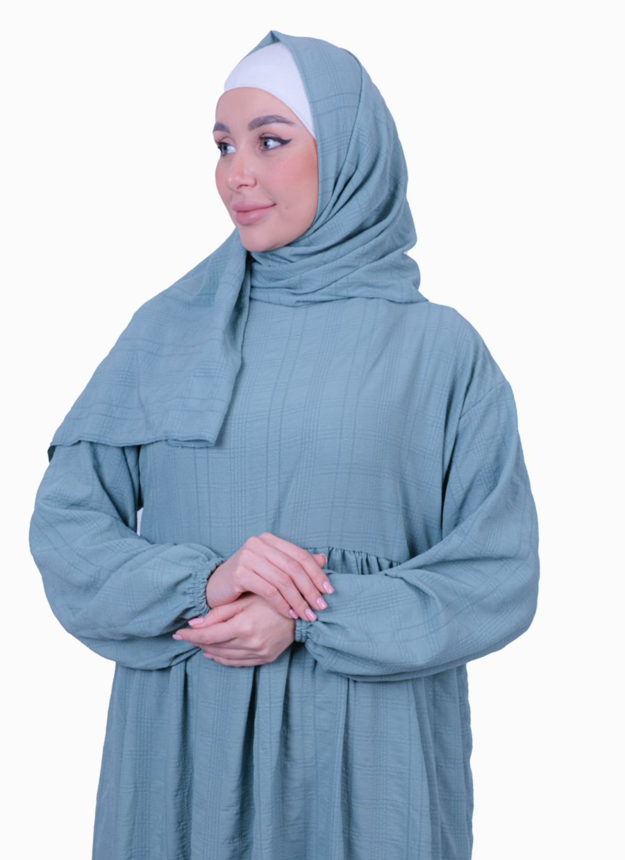 Introducing our practical prayer set from our modern and elegant collection of prayer sets, designed and crafted in Jordan using the finest lightweight and breathable fabrics known as "CY Muajjan", which are resistant to wrinkles and maintain their quality after washing, featuring contemporary and distinctive colors. This set consists of a one-piece garment with attached sleeves and a non-detachable shawl. The piece's length from the shoulder is 145 cm with a circumference of 165 cm. The shawl measures 160 cm in length and 60 cm in width