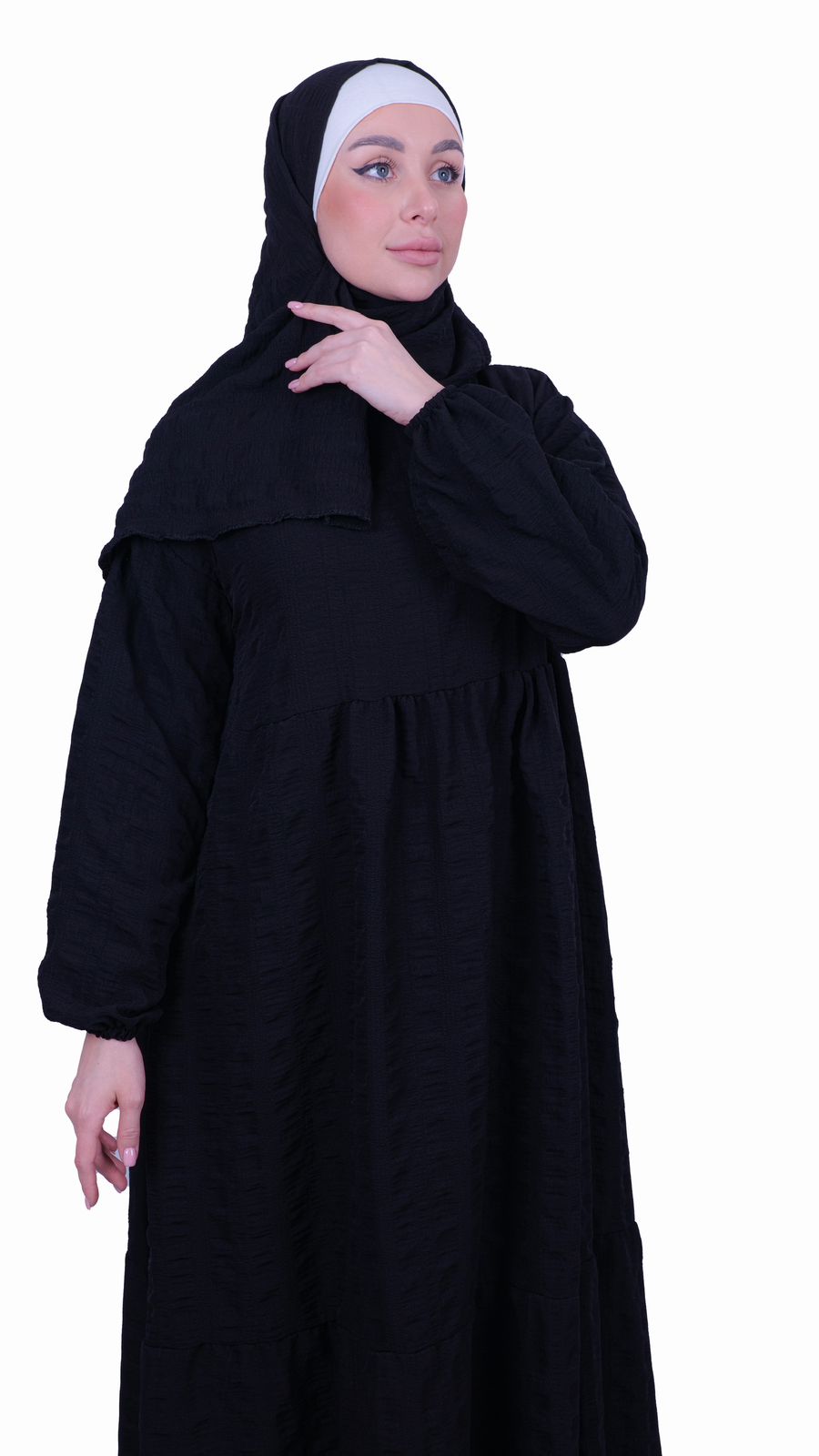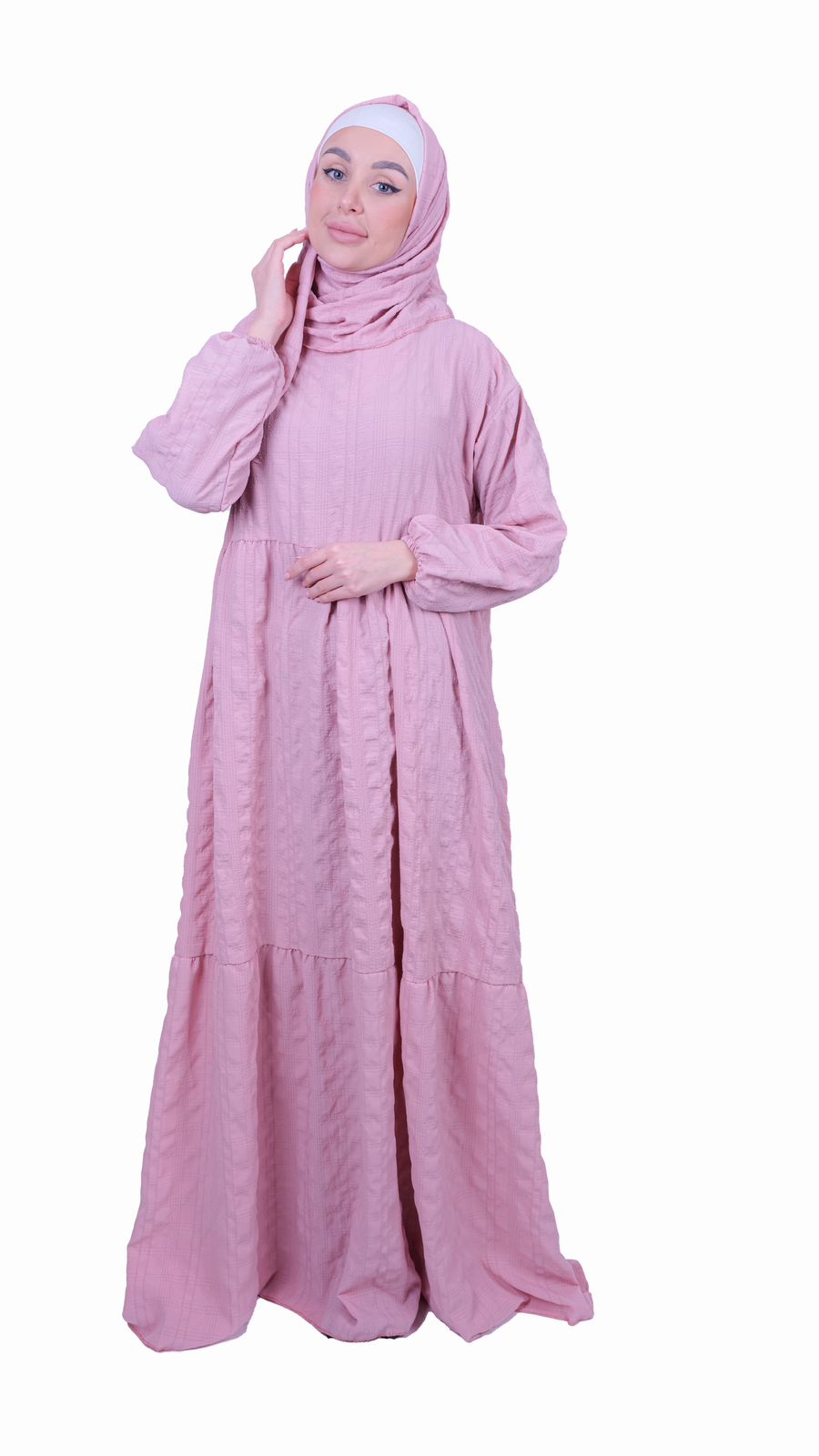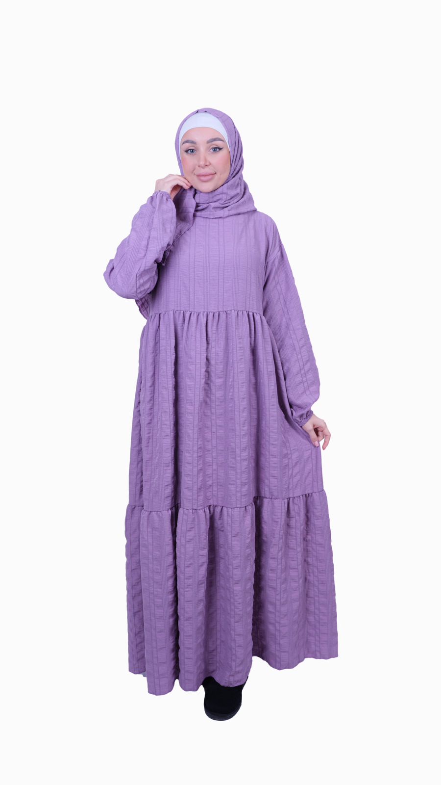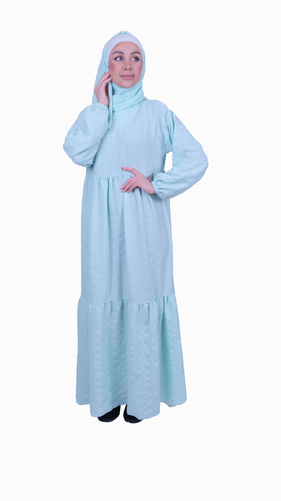 Introducing our practical prayer set from our modern and elegant collection of prayer sets, designed and crafted in Jordan using the finest lightweight and breathable fabrics known as "CY Muajjan", which are resistant to wrinkles and maintain their quality after washing, featuring contemporary and distinctive colors. This set consists of a one-piece garment with attached sleeves and a non-detachable shawl. The piece's length from the shoulder is 145 cm with a circumference of 165 cm. The shawl measures 160 cm in length and 60 cm in width