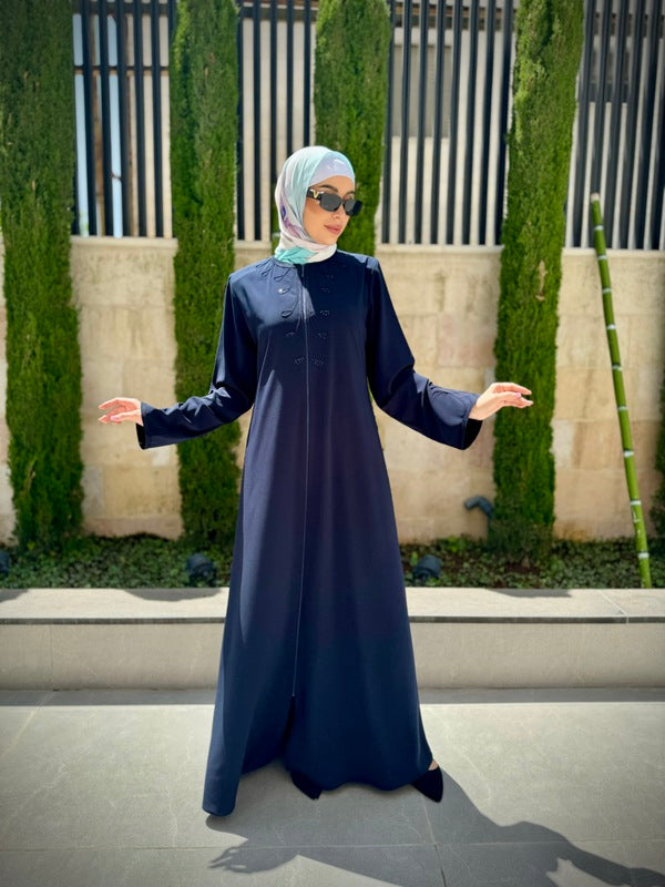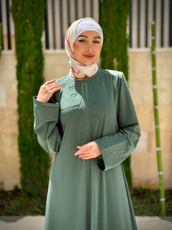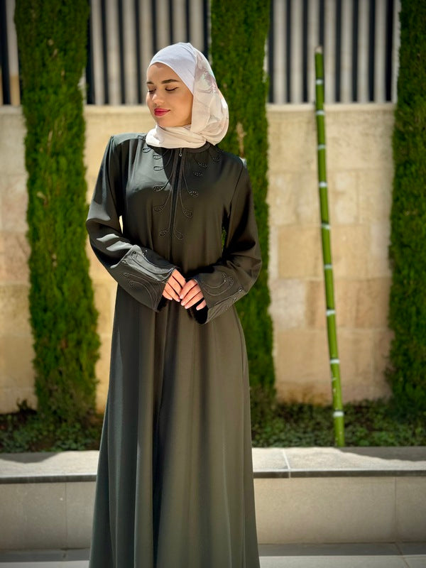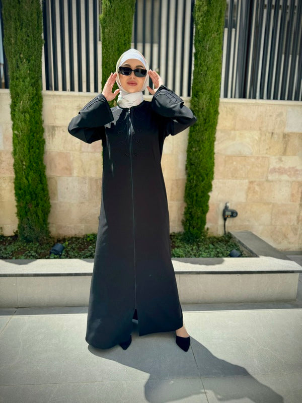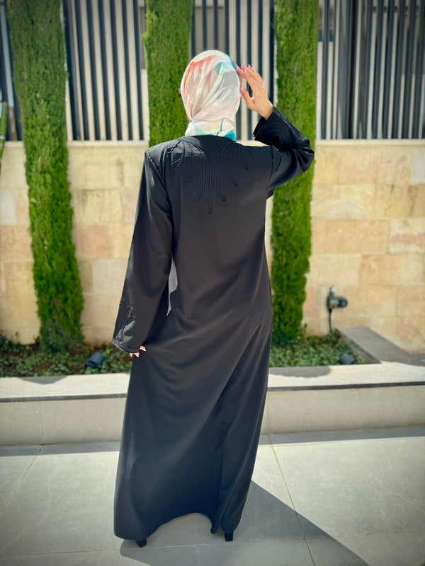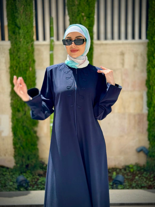 Regular price $35.99 USDIndulge in sophistication with this colorful abaya, crafted from Prada fabric and adorned with embroidery and rhinestone details on the chest, back, and sleeves. It's closed from the front with a zipper for easy wearing, ensuring both style and convenience. For a unique and distinctive look from our modern and elegant collection. Designed and crafted in Jordan using high-quality fabrics.