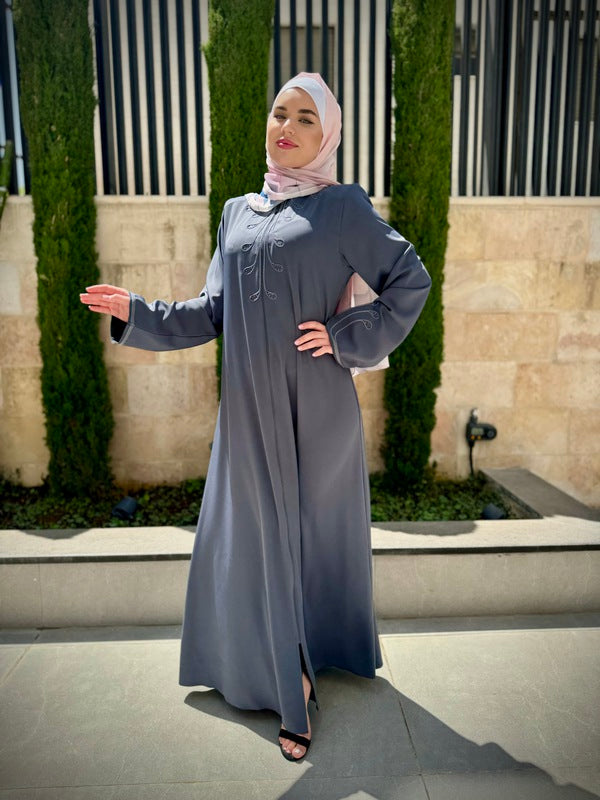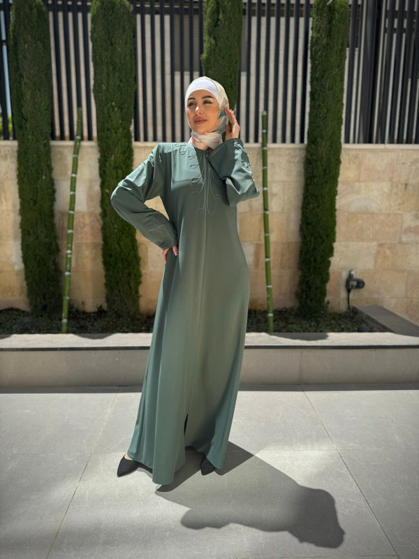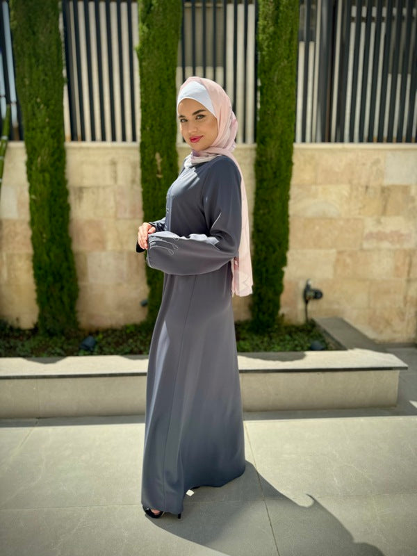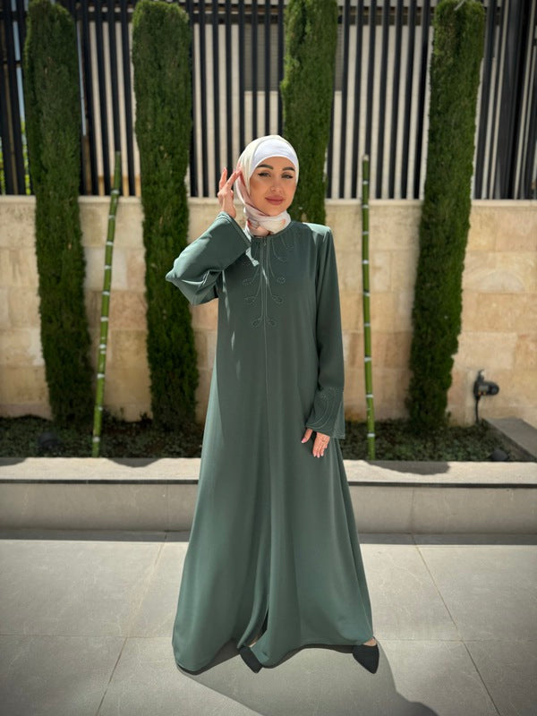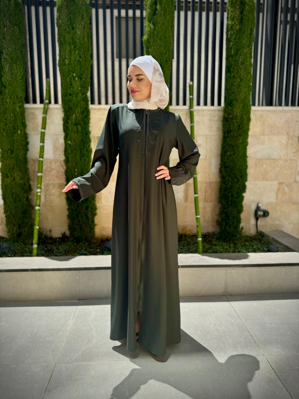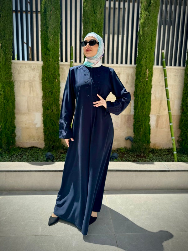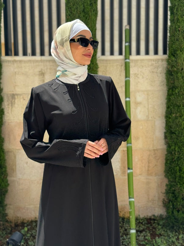 Regular price $35.99 USDIndulge in sophistication with this colorful abaya, crafted from Prada fabric and adorned with embroidery and rhinestone details on the chest, back, and sleeves. It's closed from the front with a zipper for easy wearing, ensuring both style and convenience. For a unique and distinctive look from our modern and elegant collection. Designed and crafted in Jordan using high-quality fabrics.