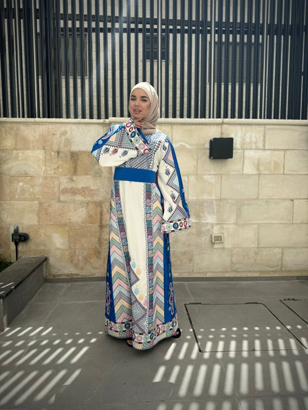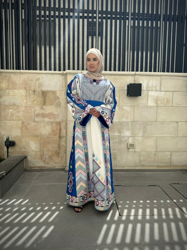 Chic Embroidered Kaftan: Elevating Modern Elegance from Our Contemporary Collection, Complete with a Waist Belt. Designed and Crafted with Finest Fabrics in Jordan."