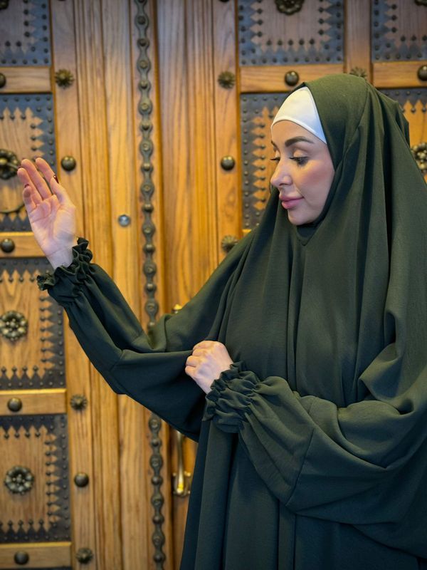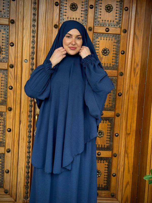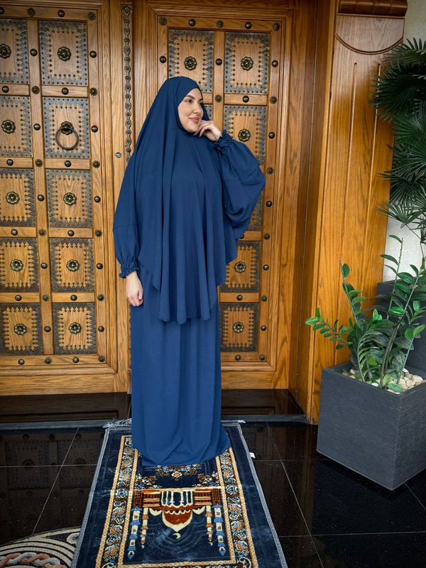 Practical prayer set from our modern and elegant collection of prayer sets, designed and manufactured in Jordan using the finest lightweight and cool fabrics known as (CY) that do not wrinkle or shrink and are resistant to washing, with their distinctive modern colors. This model consists of a top with sleeves... Its length is 105 cm and its width circumference is 380 cm. And a skirt with a length of 105 cm and a width of 75 cm.